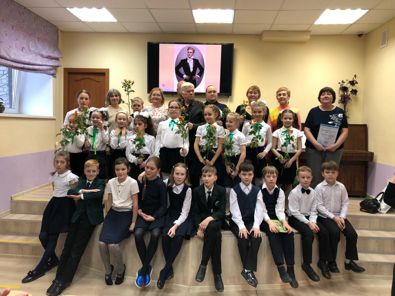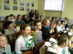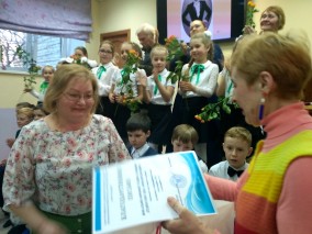 Праздничный вечер не обошелся и без живого музыкального сопровождения. Вокально-хоровая студия «Ландыш» под руководством Татьяны Геннадьевны Крук подготовила композицию «Добрые песни».