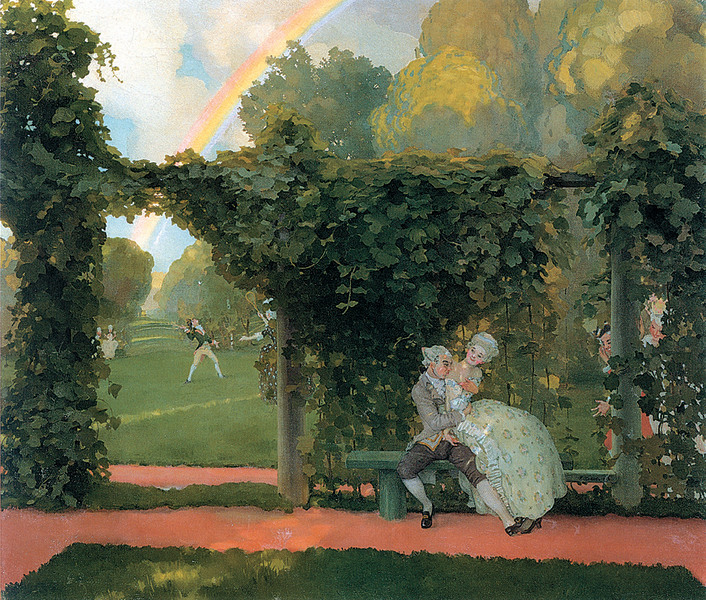 Имя этого художника неразрывно связано с художественным объединением «Мир искусства». Сомов – яркий представитель русского модерна и символизма. Его картины отличаются изысканностью, поэтичностью образов, они многогранны и неоднозначны по содержанию. Сомов стал создателем нового типа портрета, названного ретроспективным: художник писал своих современников в костюмах былых эпох, выступил певцом галантного восемнадцатого века. Современники говорили о Сомове, что в своих произведениях он воплощает тени давно минувшего.