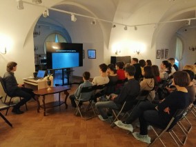 Кроме фильма была также продемонстрирована программа «Дворец в старой фотографии», познакомившая студентов с иконографией Дворца довоенного периода и разрушениями, произошедшими в годы войны.