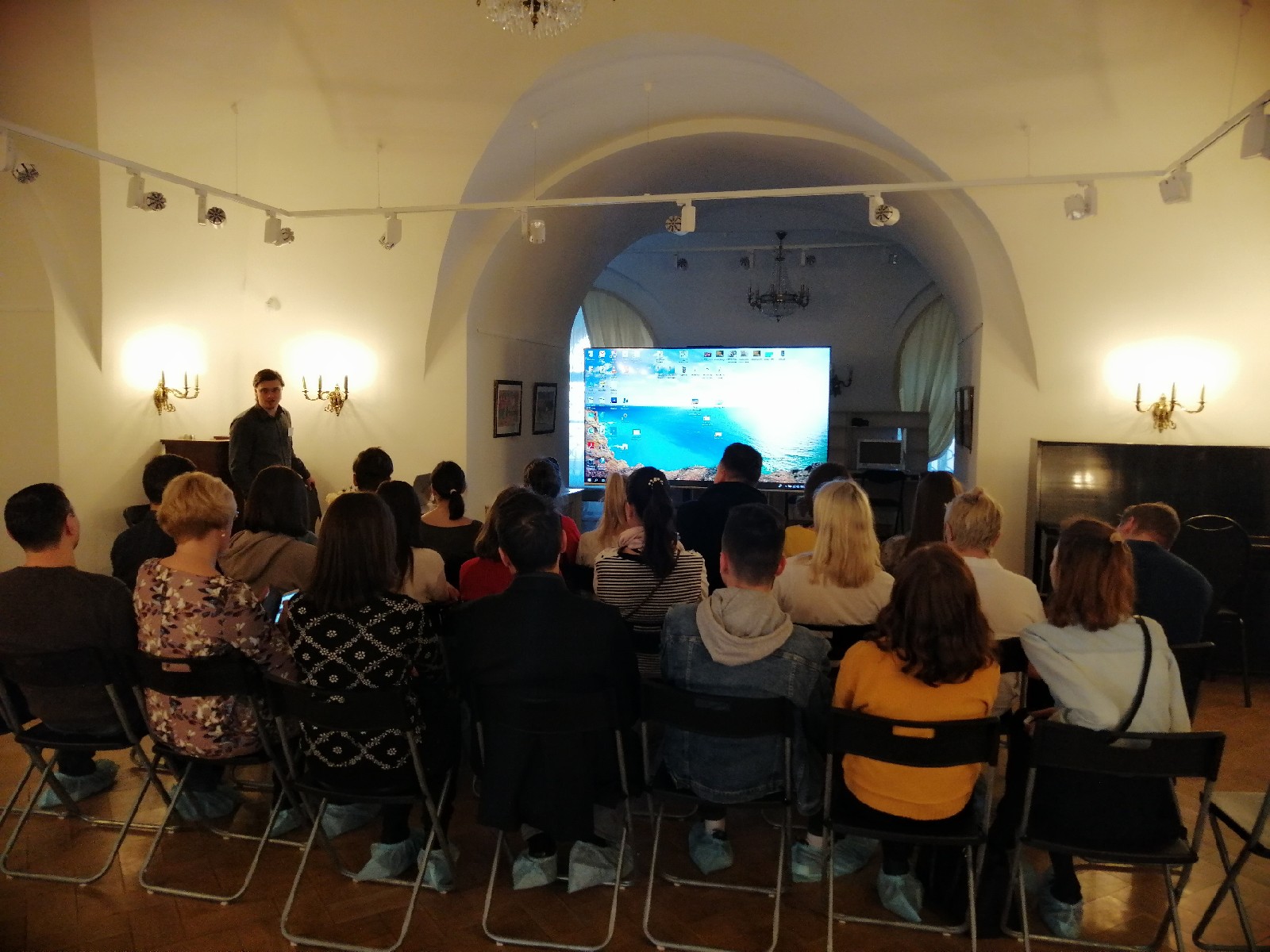 Студенты получили уникальную возможность увидеть Дворец в том виде, каким он был до современной реставрации. В ходе Великой Отечественной войны он был почти уничтожен. Архитекторы Колли и Бондаренко уже в военное время в отсутствие денежных средств и чертежей, хранившихся в блокадном Ленинграде воссоздают Дворец, сохранив памятник культуры, но используется он уже под нужды Калининского облисполкома. В таком виде Тверской императорский дворец просуществовал более 60 лет до масштабной реставрации, проводившейся в 2012 – 2015 годах. Незадолго до начала реставрационных работ был снят фильм «Тверской императорский дворец: опыт исторической автобиографии», который и был продемонстрирован студентам РАНХиГС. Фильм также представлен в медиатеке Виртуального Русского музея