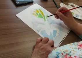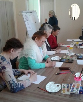 Участницы с интересом окунулись в увлекательный мир творчества и проверили свои скрытые художественные таланты. У каждой участницы встречи получился свой особенный, неповторимый цветок, отличающийся цветовой гаммой и красотой, созданный при сочетании прозрачных слоев акварели.