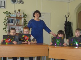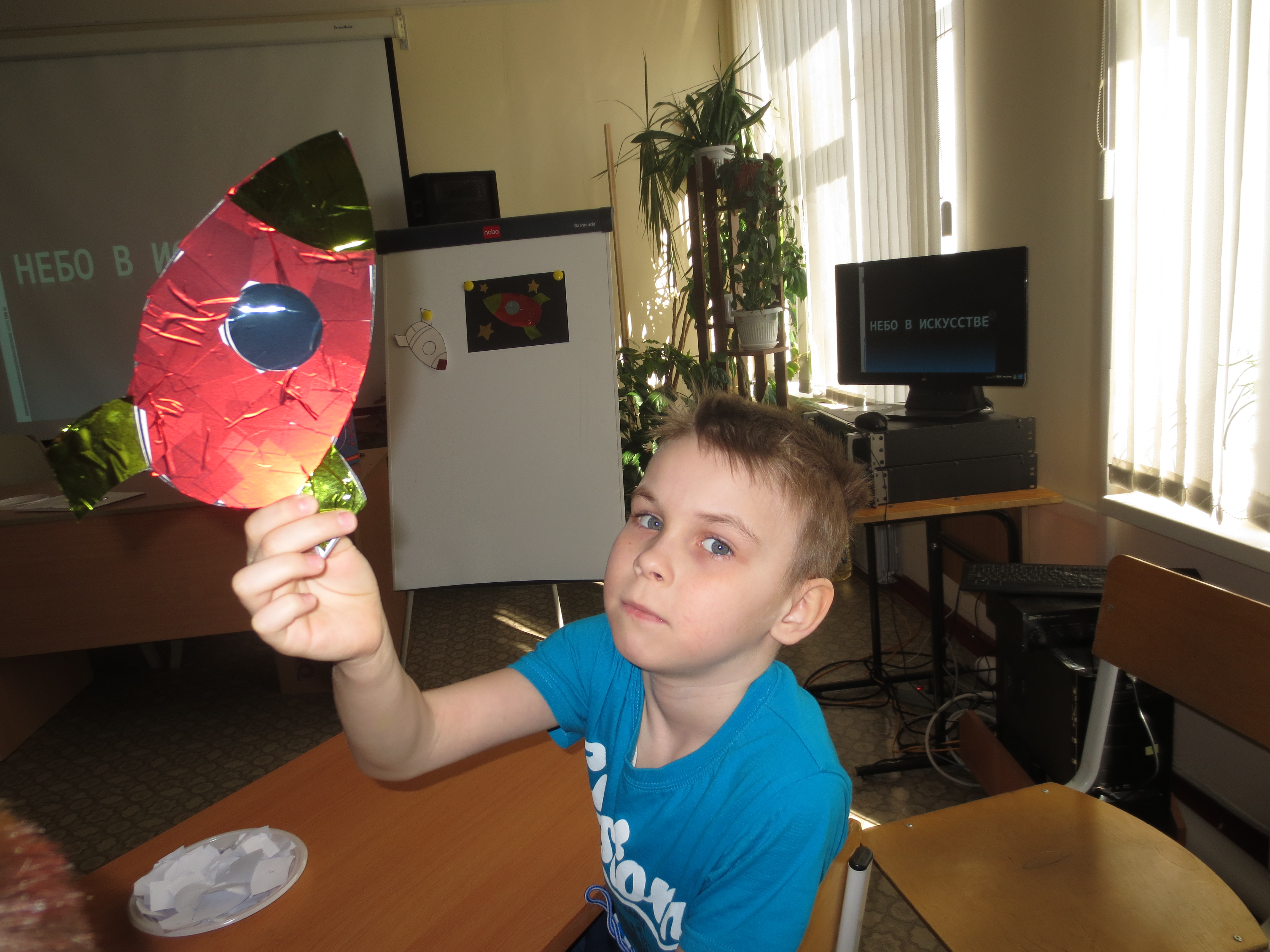 В завершение ребята сделали аппликацию «Ракета в космосе».