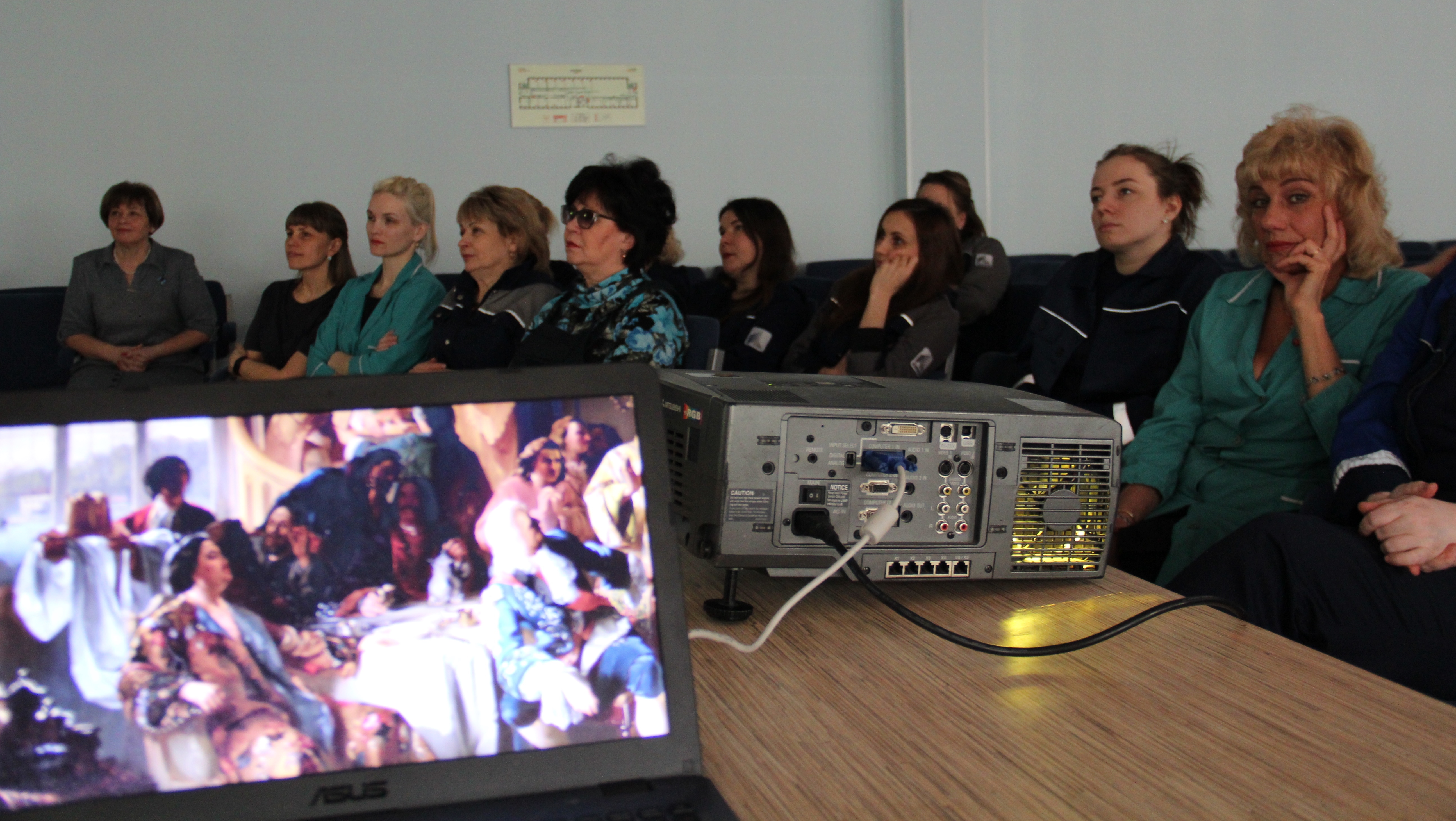 Нашу выездную экскурсию для работников цехов предприятия «Кинеф», мы посвятили знакомству с шедеврами Русского музея. В свой обеденный перерыв заводчане стали нашими благодарными зрителями.