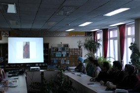 9 апреля 2019 года в информационно-образовательном центре «Русский музей: виртуальный филиал», обосновавшемся в читальном зале библиотеки «Дворец книги», собрались слушатели факультета «Духовное возрождение». Их вниманию была предложена небольшая лекция о Петропавловском соборе, сопровождаемая просмотром картины неизвестного художника «Вид на Петропавловский собор со стороны Невы» из раздела «Храмы Петербурга» интерактивной программы «Иисус Христос в изобразительном искусстве и культуре», а также состоялось знакомство с монументальным изображением на живописных полотнах апостолов Петра и Павла из раздела «Сюжеты. Сошествие Святого Духа на апостолов». Картины поражают лаконичностью, красотой форм, локальностью цветовых решений, и в то же время экспрессией и выразительностью. Рефлексия слушателей была очевидна.