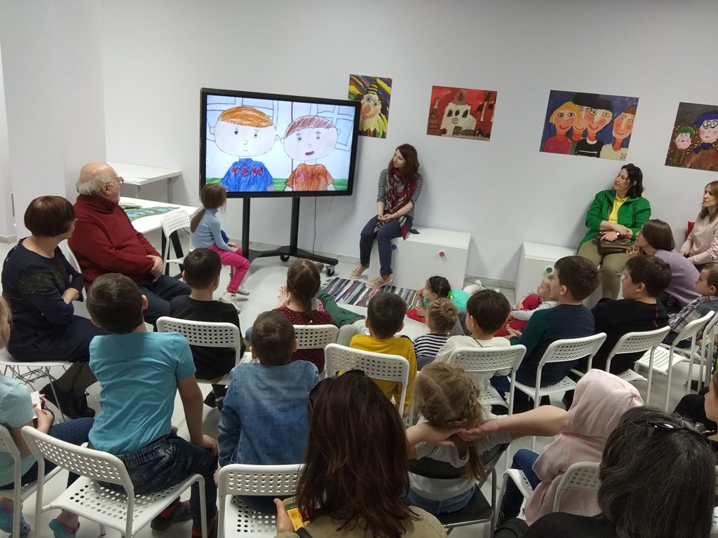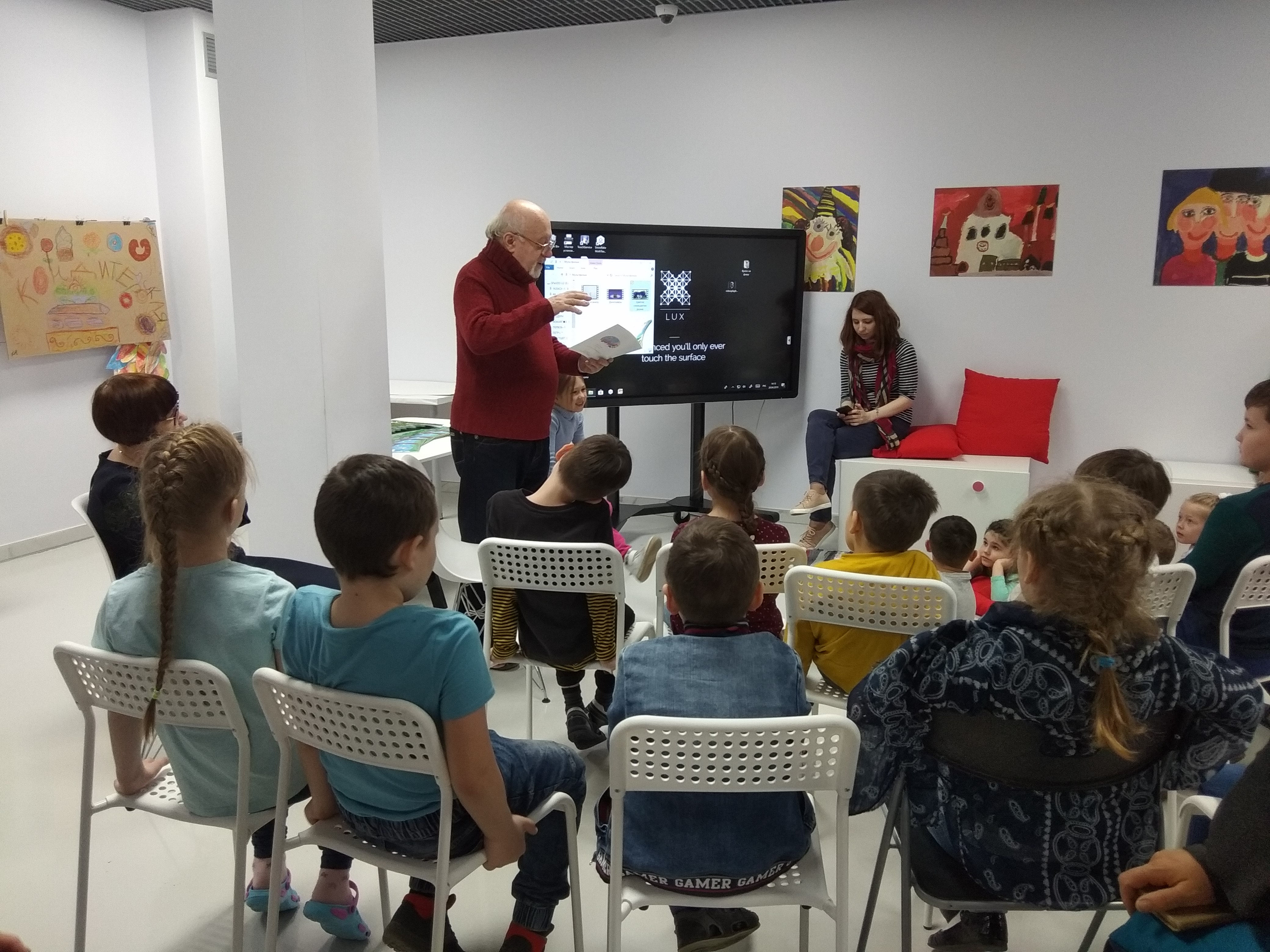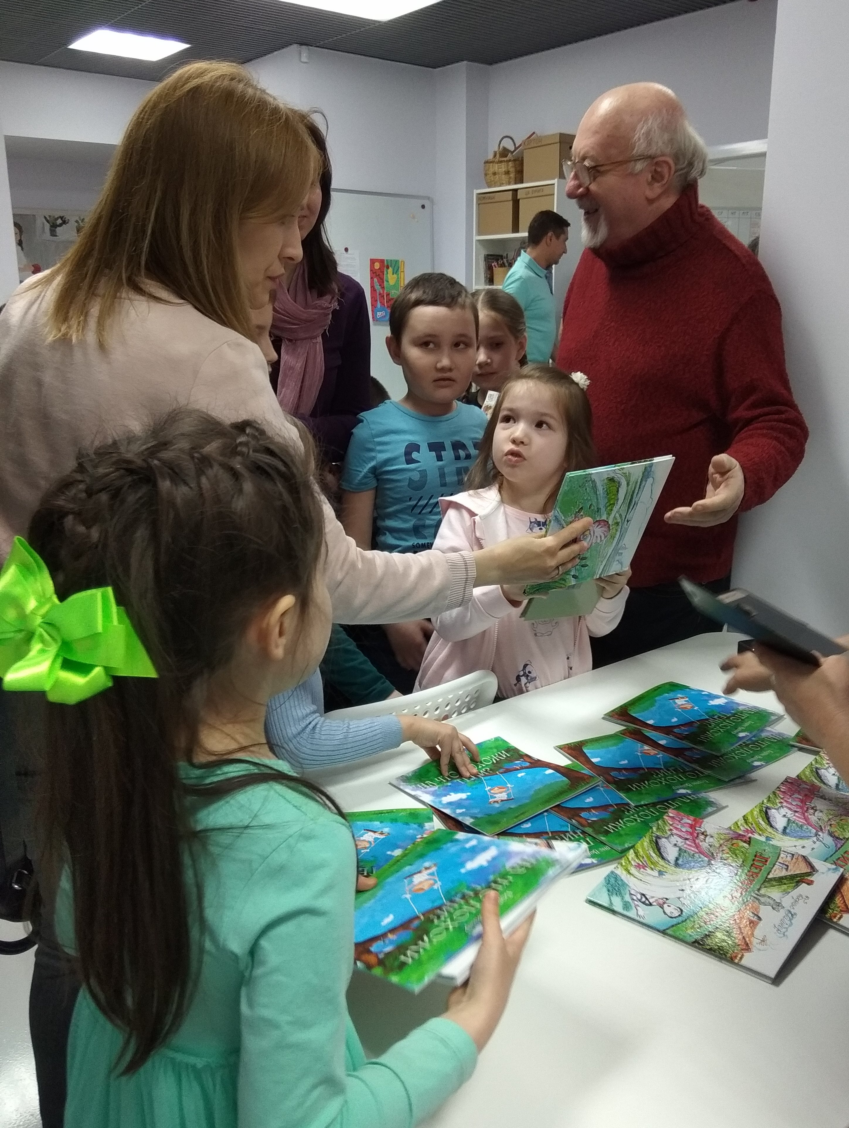 Дети и их родители послушали стихи и песни нашего гостя, посмотрели мультфильмы «Вверху и внизу» и «Динозавры», созданные детьми на стихи Б. Вайнера. Ребята активно угадывали загадки, пробовали составлять рифмы. В конце встречи поэт оставил в книгах для детей свои пожелания и автограф.
