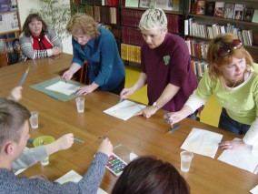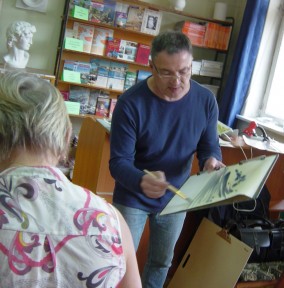 Как не взяться за кисть самому? Художник Сергей Грищенко, член Творческого союза «Балаклавская палитра», ведущий «Творческих завтраков» и Гильдия вольных художников АЗЪБУКАРТ, рисующая в Библиотеке романтики и путешествий уже три года, пригласила всех желающих на арт-игру «Кляксография». Как говорится «рисуют все!» Каждый смог попробовать создать своё произведение искусства, используя акварель и воду. Лучшие работы заняли место на выставке. Она, кстати, работает для посещения. Заглядываете полюбопытствовать.