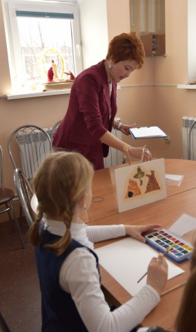 Вместе с руководителем студии — доцентом кафедры дизайна и МПО ЧГПУ им. И. Я. Яковлева, иконописцем Кузиной Еленой Алексеевной школьники, гимназисты и студенты разобрали иконографический сюжет большего из всех чудес Господа над народом израильским* — воскрешение Господом праведного Лазаря. Для этого были рассмотрены иконы «Воскрешение Лазаря» (середина-вторая половина XV века, Новгород) и «Воскрешение Лазаря» (ок. 1497) интерактивной программы «Иисус Христос в изобразительном искусстве и культуре XII-XX вв.» медиатеки ИОЦ «Русский музей: виртуальный филиал». Во второй части занятия гости при помощи акварели изобразили горы, увиденные на иконах, с их округленными верхушками, лещадками и уступами.