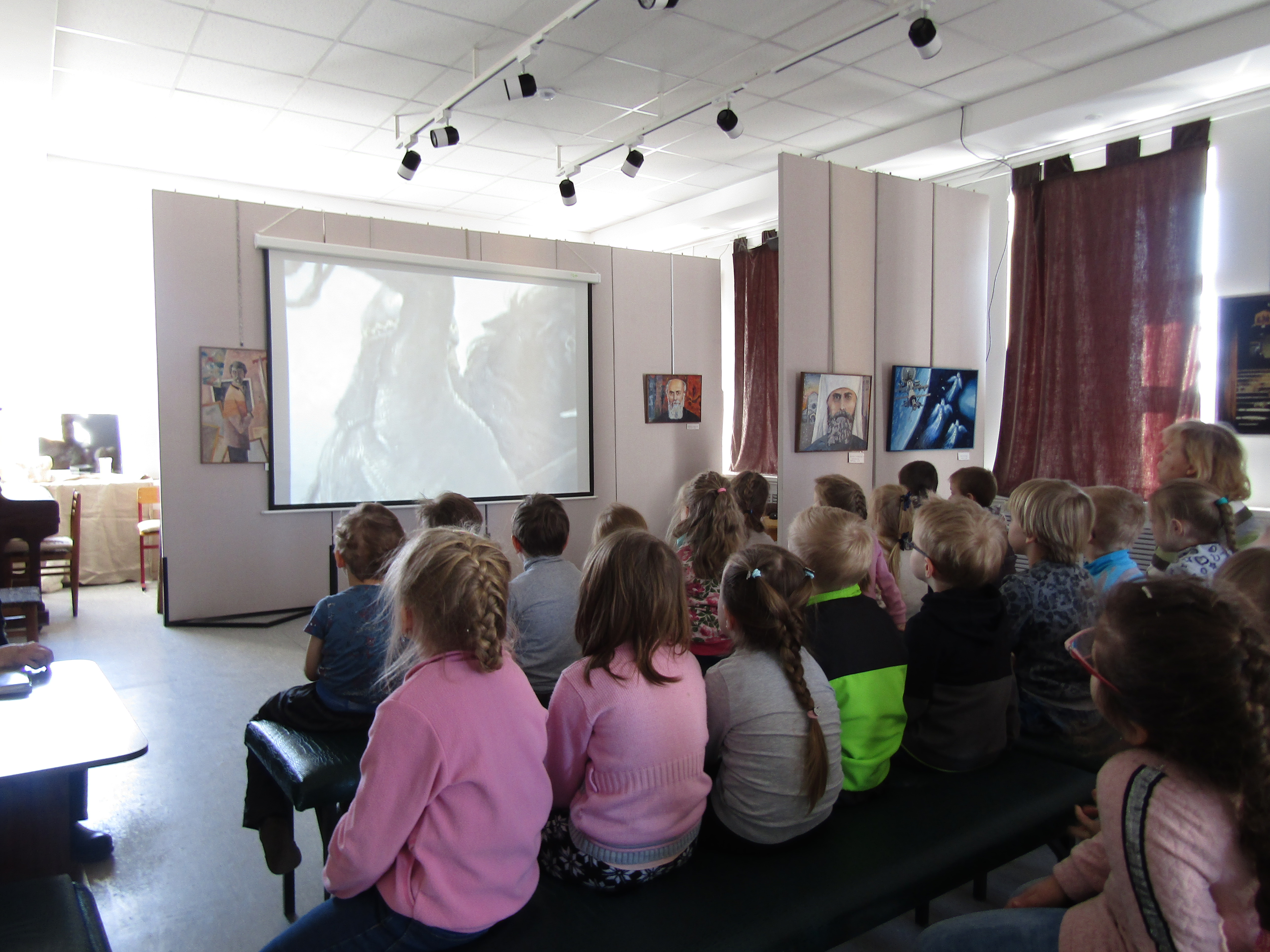 В Ржевском выставочном зале прошло мероприятие для дошкольников из цикла "Сказки о русских художниках". Детям из детского сада № 15 г.Ржева показали фильмы из медиатеки Русского музея о В.Васнецове и И.Репине.