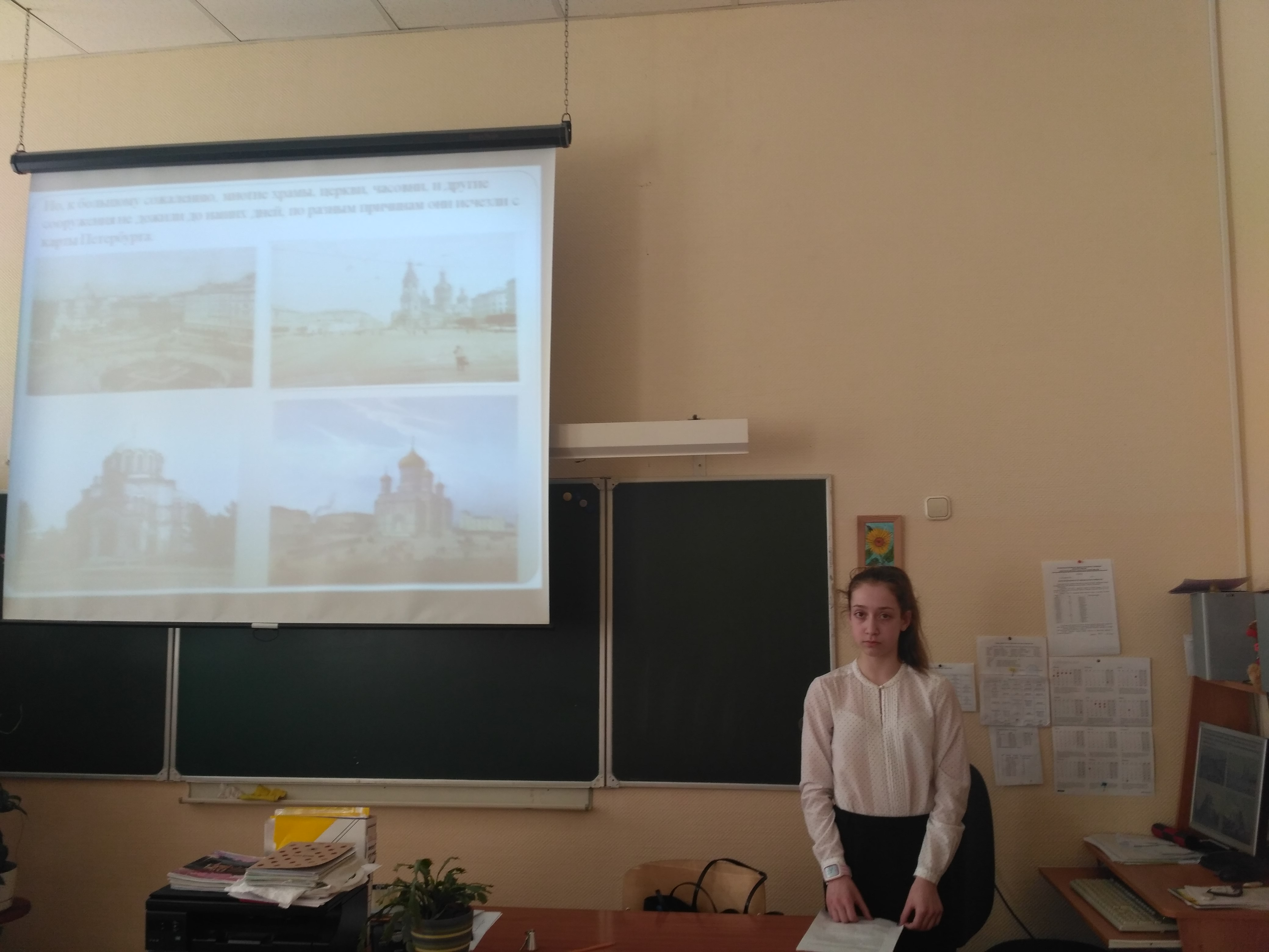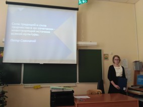 В апреле в гимназии проходят защиты годовых проектов, которые выполняет каждый гимназист в рамках программы «Введение в научно-исследовательскую деятельность». Обучающиеся восьмых классов пишут работы в рамках целевой творческой программы «Диалоги культур». Ежегодно восьмиклассники выбирают темы, связанные с Русским музеем. В этом году успешно защитили свои работы Калинкина Александра «Традиции русского народа на примере картин из коллекции Русского Музея», Рябков Никита «Столкновение культур в рекламе на примерах плакатов в экспозиции Русского музея», Кононова Меланья «Уникальность храмового зодчества Санкт-Петербурга» на основе книги «Религиозный Петербург», изданной Русским Музеем. В работе над исследованием темы ребятам помогала Махонина Ирена Эмильевна, классный руководитель и куратор проекта «Мобильный образовательный центр», в котором ее класс участвует четвертый год подряд.