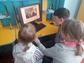В начале мероприятия школьникам рассказали о правилах поведения в виртуальном филиале, показали, как нужно работать за компьютером и познакомили с познавательными интерактивными программами, посвященными русскому искусству. Ребята играли в игры «Ровесники», «Светлячки», «России – воины сыны», «Одеть картину» и разгадывали различные загадки, головоломки и ребусы о картинах