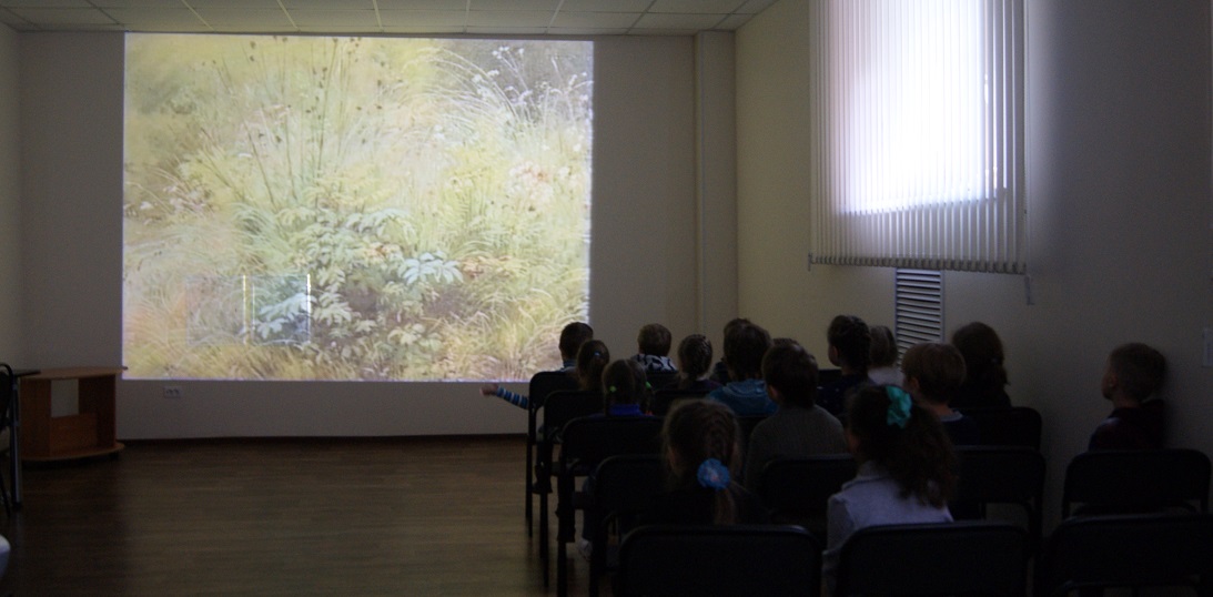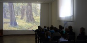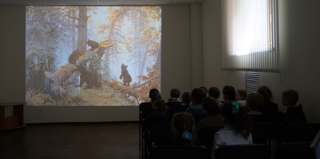 Сегодня они благодаря фильму медиатеки виртуального филиала Русского музея из цикла «Сказки о русских художниках» попали в лесное царство. Высокие сосны с чешуйчатой корой и смолистым запахом, могучие дубы с их кружевной кроной, стройные берёзы, ручьи с мостиками, лесные тропинки увидели ребята. Так реалистично писал свои картины Иван Иванович Шишкин. Тот, кто рассматривает работы Шишкина, словно ощущает мягкость мха, нежную хрупкость травы, прохладу чащи.