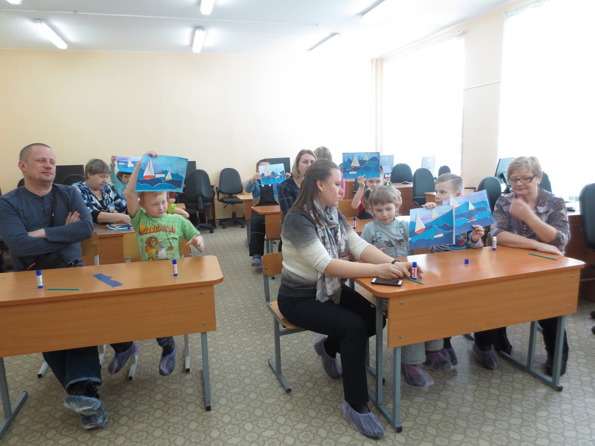 Гостям представили репродукции картин «Волна» и «Девятый вал», которые находятся в Русском музее Санкт-Петербурга. Настоящими художниками-маринистами почувствовали себя и ребята, и родители, создавая морскую аппликацию.
