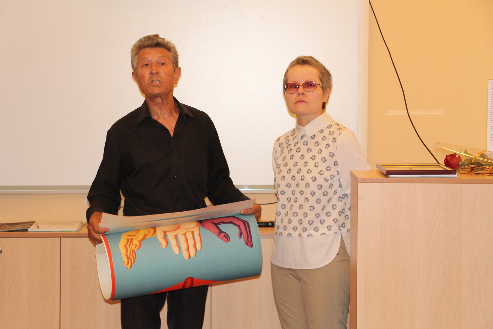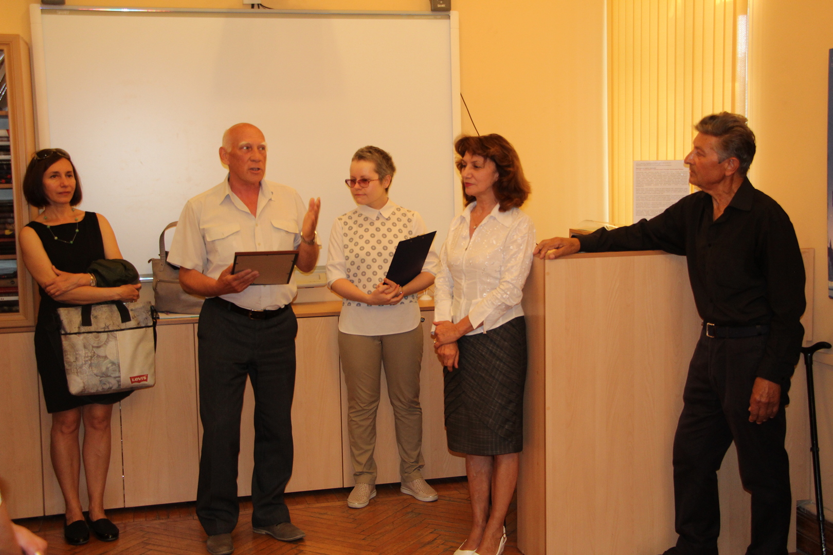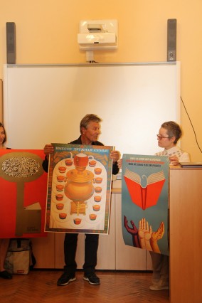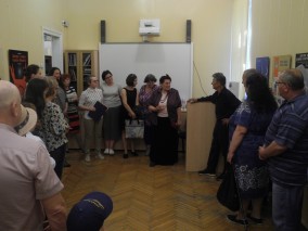 В день открытия, который совпал по дате с Общероссийским днем библиотек, Валерий Михайлович передал в дар ЦГБ им. Л. Н. Толстого четыре великолепных авторских плаката на тему популяризации книги и чтения.