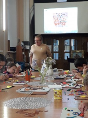 26 июня с программой Виртуального Русского музея познакомились воспитанники Социально-реабилитационного центра для несовершеннолетних г. Чебоксары. Ребята узнали, что для слепых людей художники создают специальные тактильные картины, которые незрячие могут «прочитать» руками, наощупь. В музее представлены картины тактильной выставки «Мы живем в мире», на примере которых можно понять, как передается информация через рельефные и объемные детали. Доступным способом подобной помощи «перевода» живописи для слепых может послужить пластилинография - это нетрадиционная техника работы с пластилином, принцип которой заключается в создании лепной картины с изображением полуобъемных предметов на горизонтальной поверхности. Под руководством педагога дети с удовольствием научились созданию художественных элементов пластилинографии, воспроизводя рельефные декоративные узоры русского сувенира «матрешка».