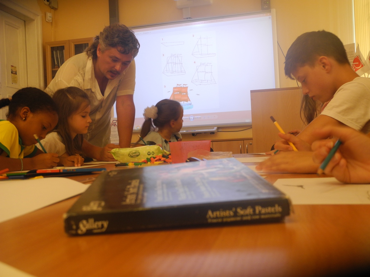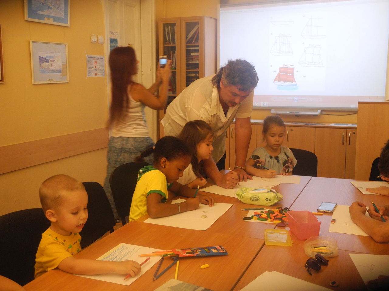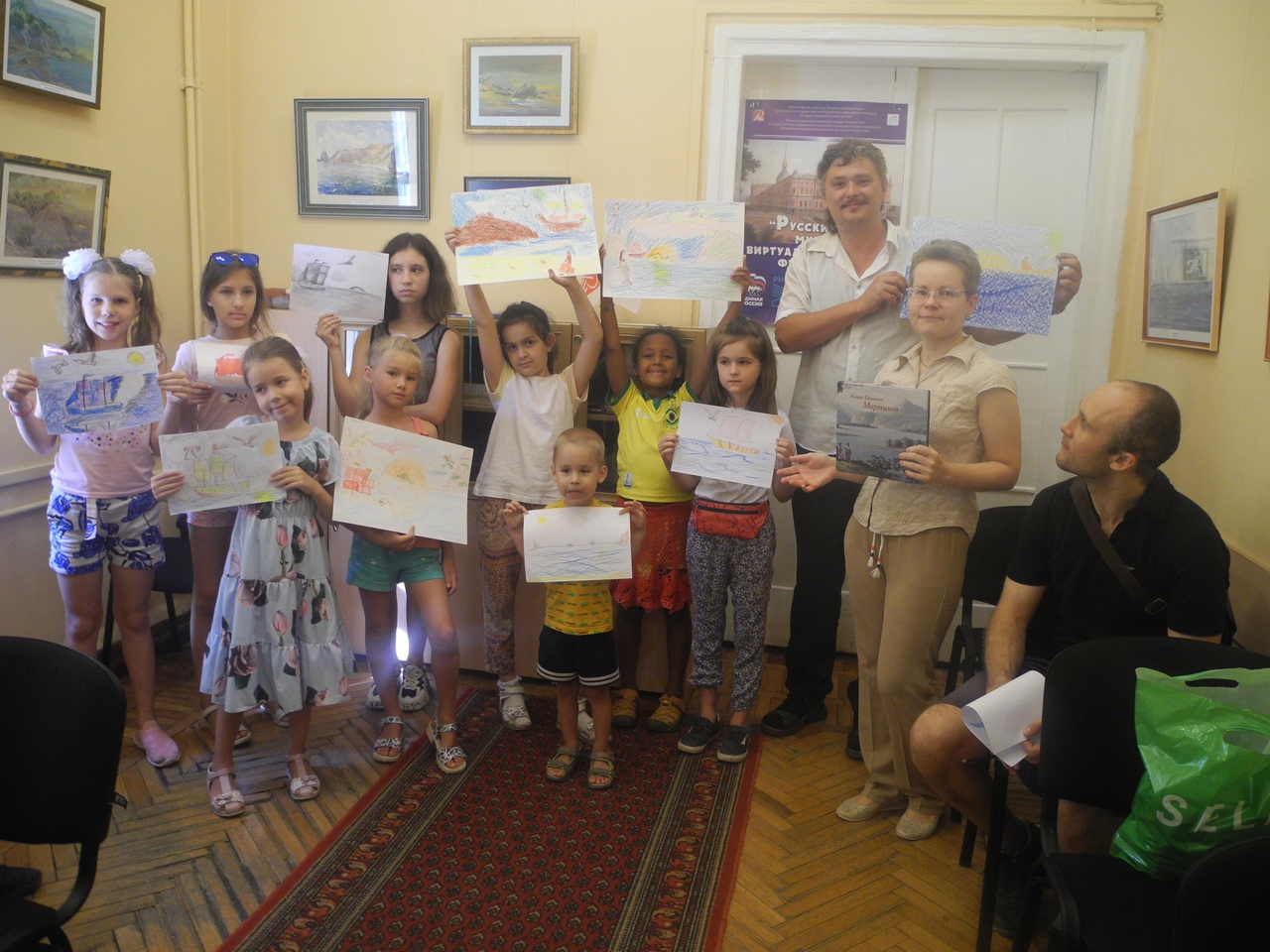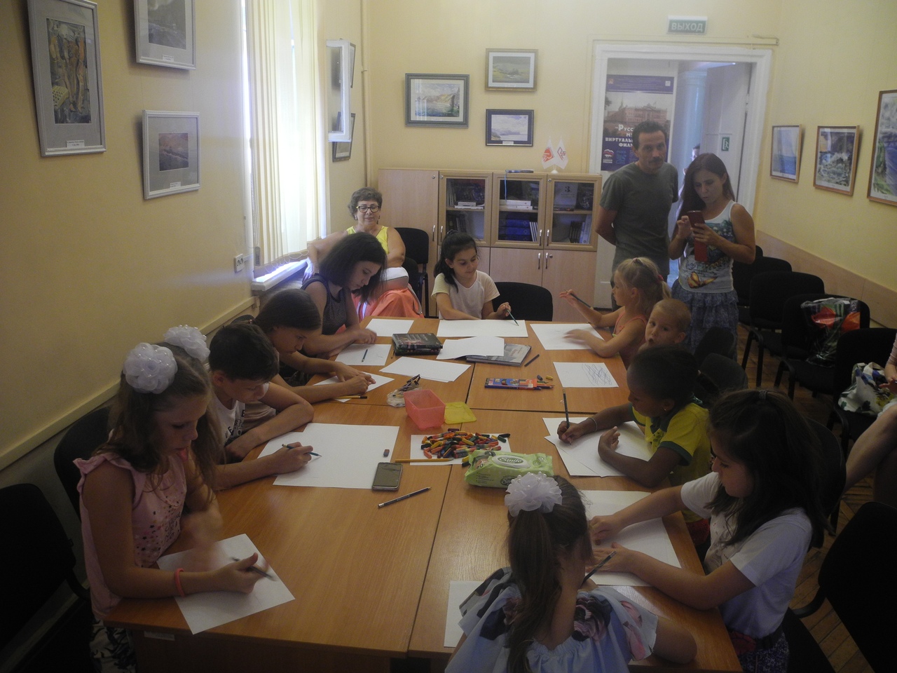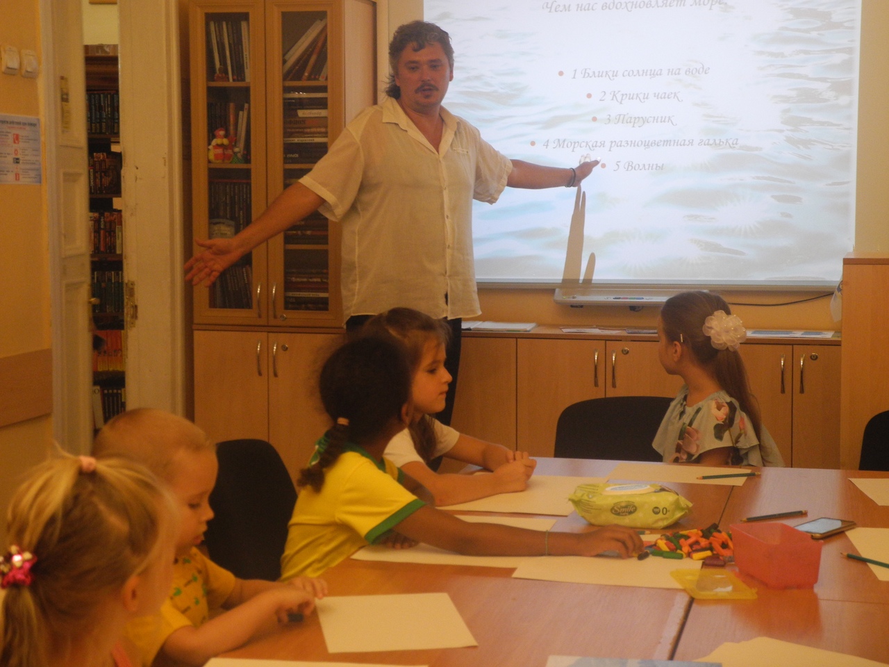 Тема моря звучно отразилась в каждом авторском произведении, а руководитель занятия Алексей Тюкин похвалил каждого начинающего художника, отметив как сильные, так и требующие развития художественные стороны рисунков.