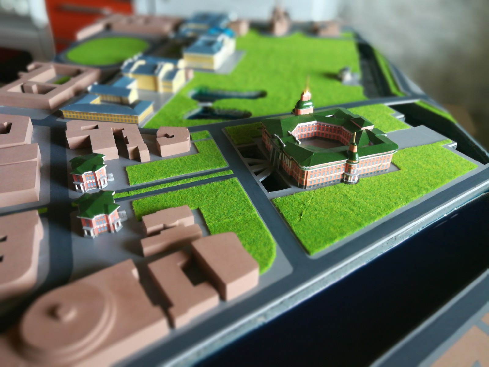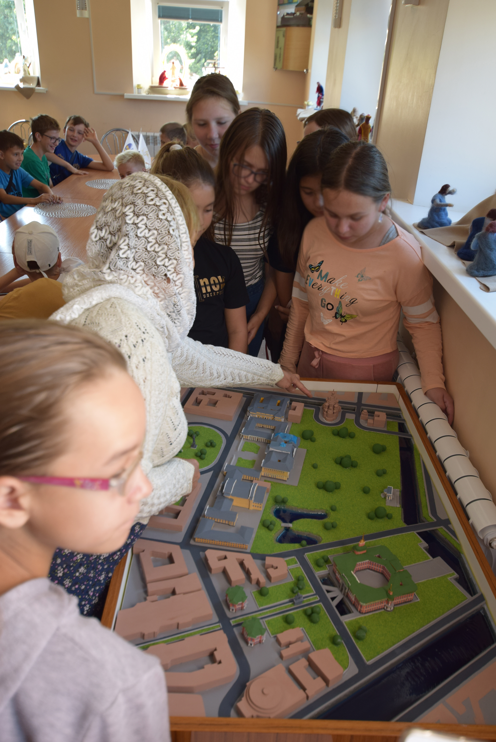 Дети знакомятся с историей строительства, архитектурой и интерьерами зданий музея, внешним обликом садов. Для запоминания особенностей объектов и их расположения относительно друг друга в музее установлен тактильный макет. В центре макета располагается Михайловский дворец. Слева от него — флигель Росси и корпус Бенуа, слева — Этнографический музей, ранее входивший в состав Русского музея. С северной стороны к дворцу примыкает Михайловский сад. От дворца по диагонали на северо-восток располагается Михайловский замок. За ним — Летний сад с Летним дворцом.