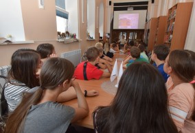 16 июля отдыхающие в пришкольном лагере школы № 37 посетили Виртуальный филиал Русского музея при храме Новомучеников. В июле музейный педагог Марина Юрьевна Демкина рассказывает посетителям о комплексе Русского музея.