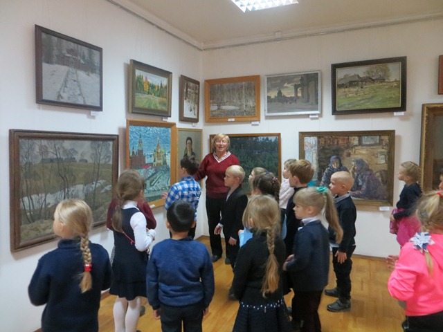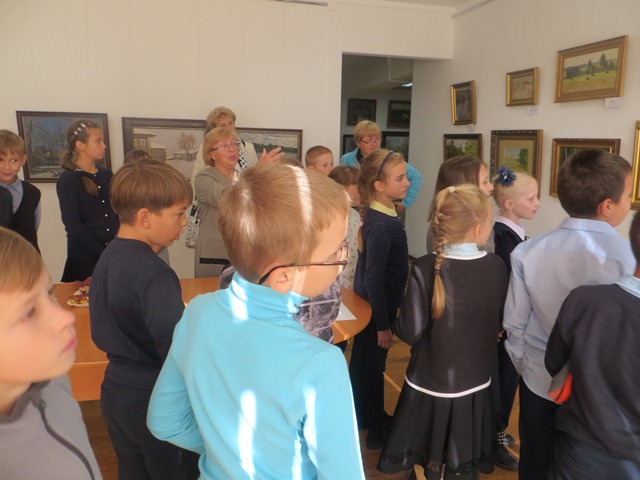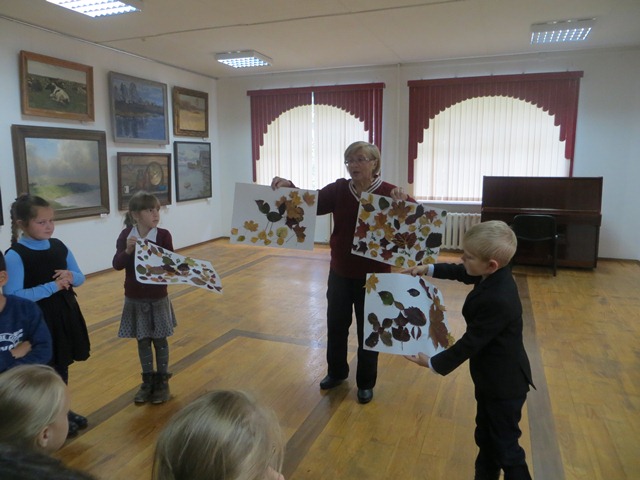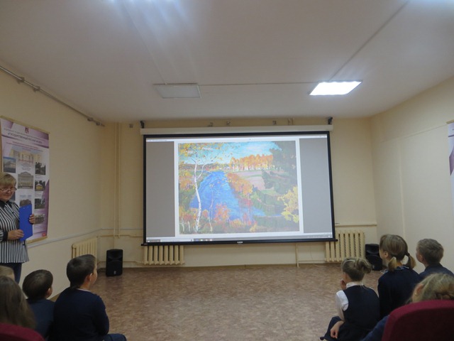 Ребята познакомились с осенними картинами известных художников И. Левитана, А. Куинджи, А. Венецианова из коллекции Русского музея. Каждая картина сопровождалась строчками из стихотворений А. Пушкина, И. Бунина, Ф. Тютчева, А. Кольцова. Звучала музыка П. Чайковского из сборника «Времена года» «Октябрь». Школьники рассматривали картины, сравнивали, отвечали на вопросы: как бы вы назвали эту картину, какое было настроение у художника, какие приметы осени видите? После просмотра дети посетили картинную галерею, где для них была проведена экскурсия по осенним пейзажам из экспозиции. Затем ребята фантазировали с осенними листьями, создавали из них натюрморт, знакомились с книгами о природе.