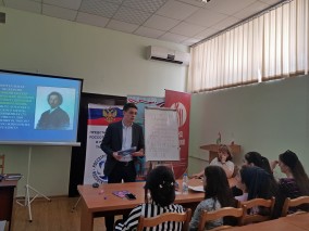 Студенты услышали рассказ о Товариществе передвижных художественных выставок, куда входил и Илья Ефимович Репин - академик Императорской Академии художеств. Создавая картины на темы легендарного прошлого, он оставался мастером животрепещущего настоящего.