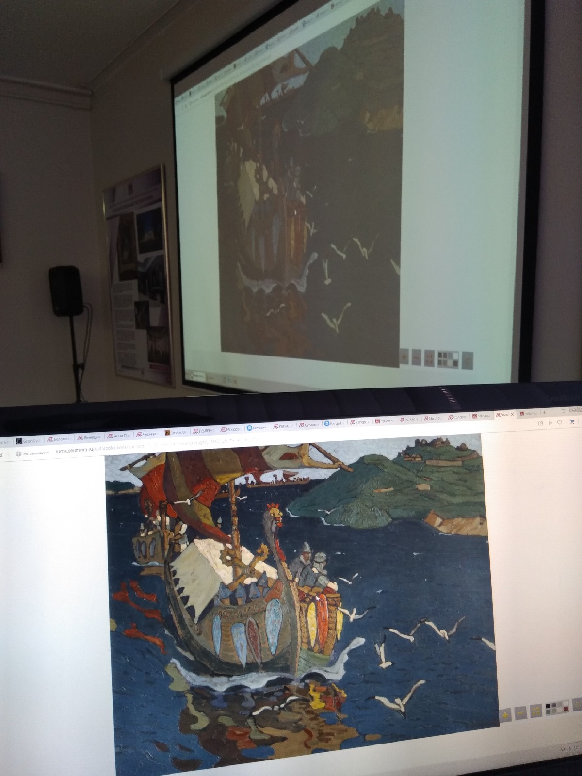 Школьники знакомятся с творчеством художников-юбиляров: Василий Поленов, Илья Репин, Константин Сомов и Николай Рерих. Виртуальная прогулка объединяет разные пространства и уводит в глубину эпох: из тихого московского дворика — на первый публичный каток в Санкт-Петербурге, из Запорожской Сечи 17 века — в легендарную эпоху русских былин. Анимированные картины активизируют и зрительную, и слуховую память учащихся: они не только видят в мельчайших подробностях шедевры изобразительного искусства, но и слышат — смех запорожцев, скрип коньков по льду, шум стягов войска Игорева.