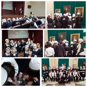 Л. Дасаева рассказала ученикам о творчестве живописца XIX века Екатерины Карловны Вахтер, подробнее ознакомив с историей ее картины «Портрет дамы», которая представлена в постоянной экспозиции музея. В ходе музейного урока ученикам было дано интерактивное задание собрать портрет из фрагментов репродукции картины «Портрет дамы».