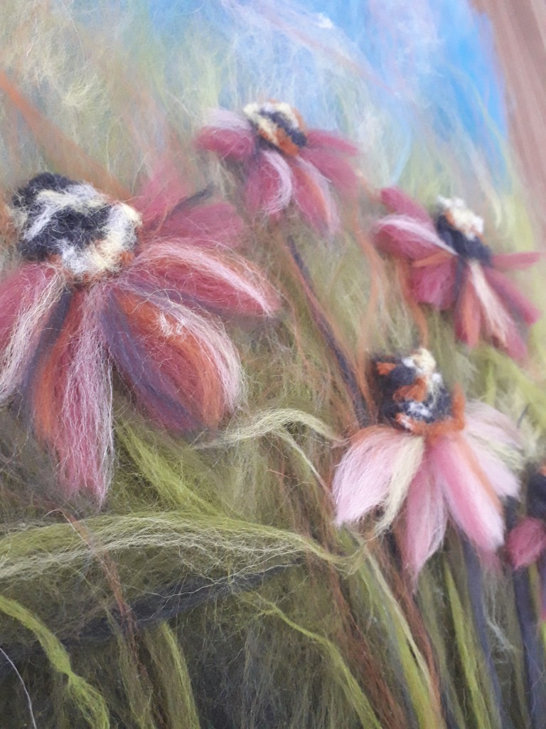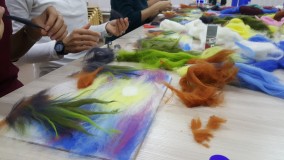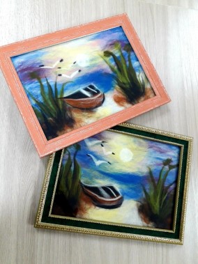 Техника рисования шерстью позволяет использовать удивительные свойства этого материала, заменяя краски. Приемы в шерстяной акварели очень сходны с используемыми в живописи. Шерсть позволяет делать тонкие цветовые переходы, насыщенные пятна и едва заметную дымку. Картины из шерсти получаются очень воздушные, каждая прядка – это как мазок кистью.