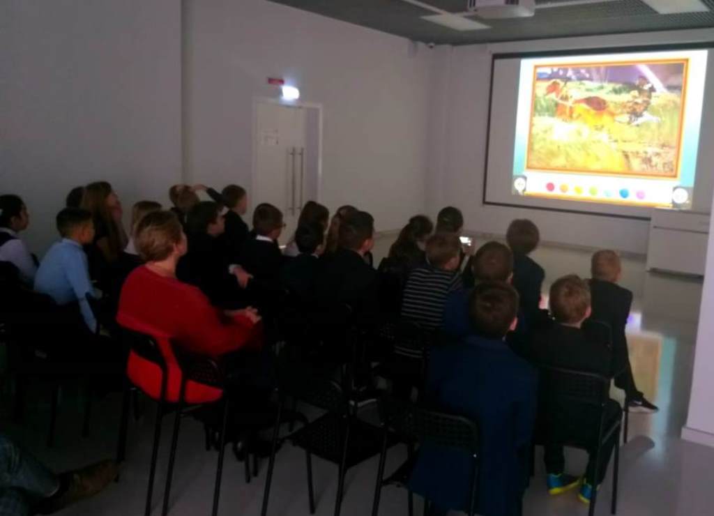 В рамках обзорной экскурсии по музею мы также знакомим наших посетителей с Виртуальным филиалом Русского музея. 17 октября участниками встречи стали учащиеся «Специализированного олимпиадно-научного центра «СОлНЦе» и «Средней общеобразовательной школы №132». Школьники познакомились с проектом «Русский музей: виртуальный филиал», его содержательным наполнением – медиатекой, зайдя в которую, посмотрели отрывок из видеофильма «Русский музей в XXI веке». Ребятам из 5 класса было интересно опробовать игровые программы, позволяющие больше узнать о роли цвета, света, звучания картин.