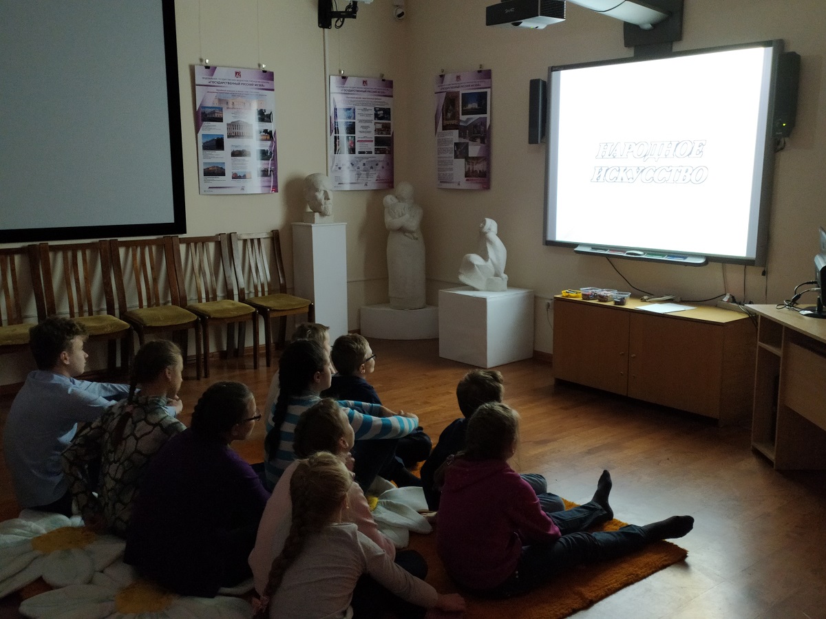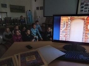 Мы продолжили разговор о русских народных сказках и снова разглядывали иллюстрации И.Я. Билибина. На этот раз подробнее поговорили о народной культуре, которая вдохновила художника на создание своих произведений, посмотрели и обсудили фильм «Народное искусство».