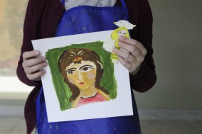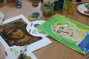 Также мы немного поговорили о материалах и попробовали получить темперную краску, смешивая пигмент и яйцо. На мастер-классе ребята попробовали повторить увиденный образ, а ещё придумали фигурки своих ангелов-хранителей из бумаги и картона!