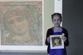 В ИОЦ: "Русский музей: виртуальный филиал" мы немного поговорили об иконописи, посмотрели фрагменты видеофильма "Сокровища Отдела древнерусского искусства" и детально рассмотрели древнейшую икону в собрании Русского музея - "Архангел Гавриил (Ангел Златые Власы)".