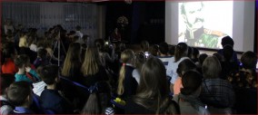 Встреча закончилась просмотром цифровой версии диафильма «Бородино» 1964 года создания, текст которого читает Михаил Казаков.