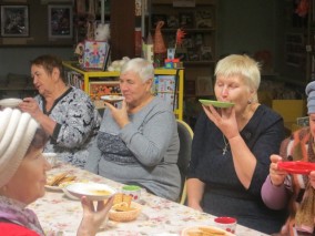 Заведующая библиотекой Наталья Пушкова рассказала о своей поездке в музей Тверского быта, традициях чаепития в купеческих семьях. С удовольствием все приняли участие в чайной церемонии, пили свежезаваренный чай с ароматными травами, угощались сушками и пряниками.