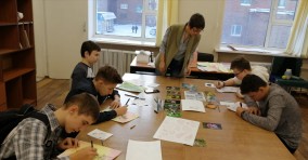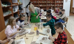 На осенних каникулах педагоги-художники школы встретили гостей - учащихся общеобразовательных школ и провели для них мастер-классы «Город мастеров». Возможность познакомиться с различными материалами и техниками: графическими и живописными, глиной, папье-маше, аппликацией, коллажем,- и сделать несложные работы вдохновила участников мастер-классов. Каждый забрал с собой частичку сотворчества, радости общения и доброты.