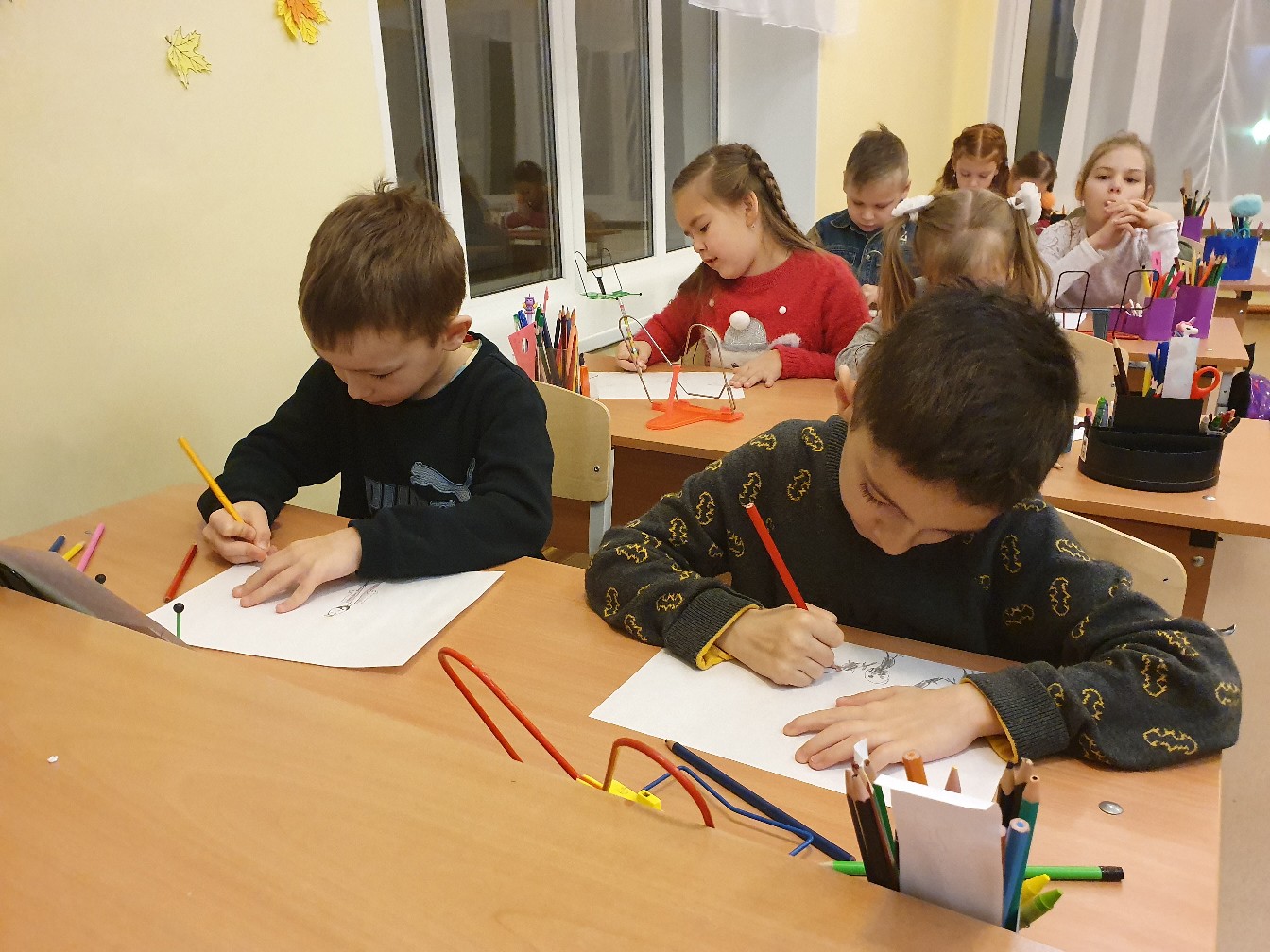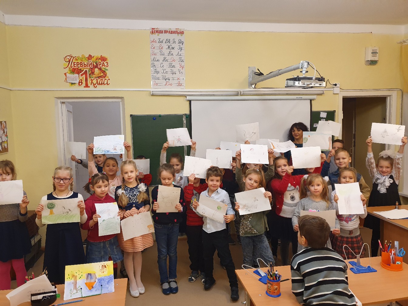 После беседы школьникам было предложено поучаствовать в викторине, а в конце их ждало очень интересное задание, нужно было нарисовать своих любимых сказочных персонажей. С поставленной задачей ребята справились на отлично! И по традиции общее фото на память , конечно же с выполненными рисунками!)