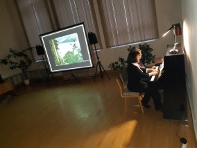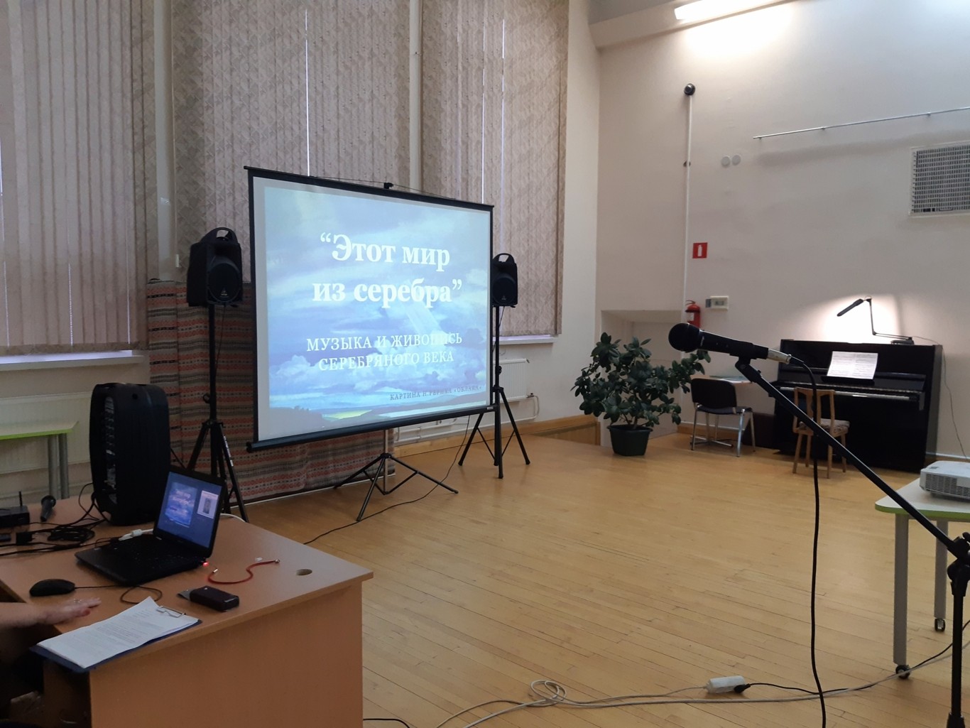 На фоне музыки демонстрировались видеоролики, посвященные картинам Н. Крымова, В. Кандинского, И. Левитана, М. Нестерова, К. Сомова, М. Чюрлениса и проводились параллели между творчеством этих композиторов и художников.