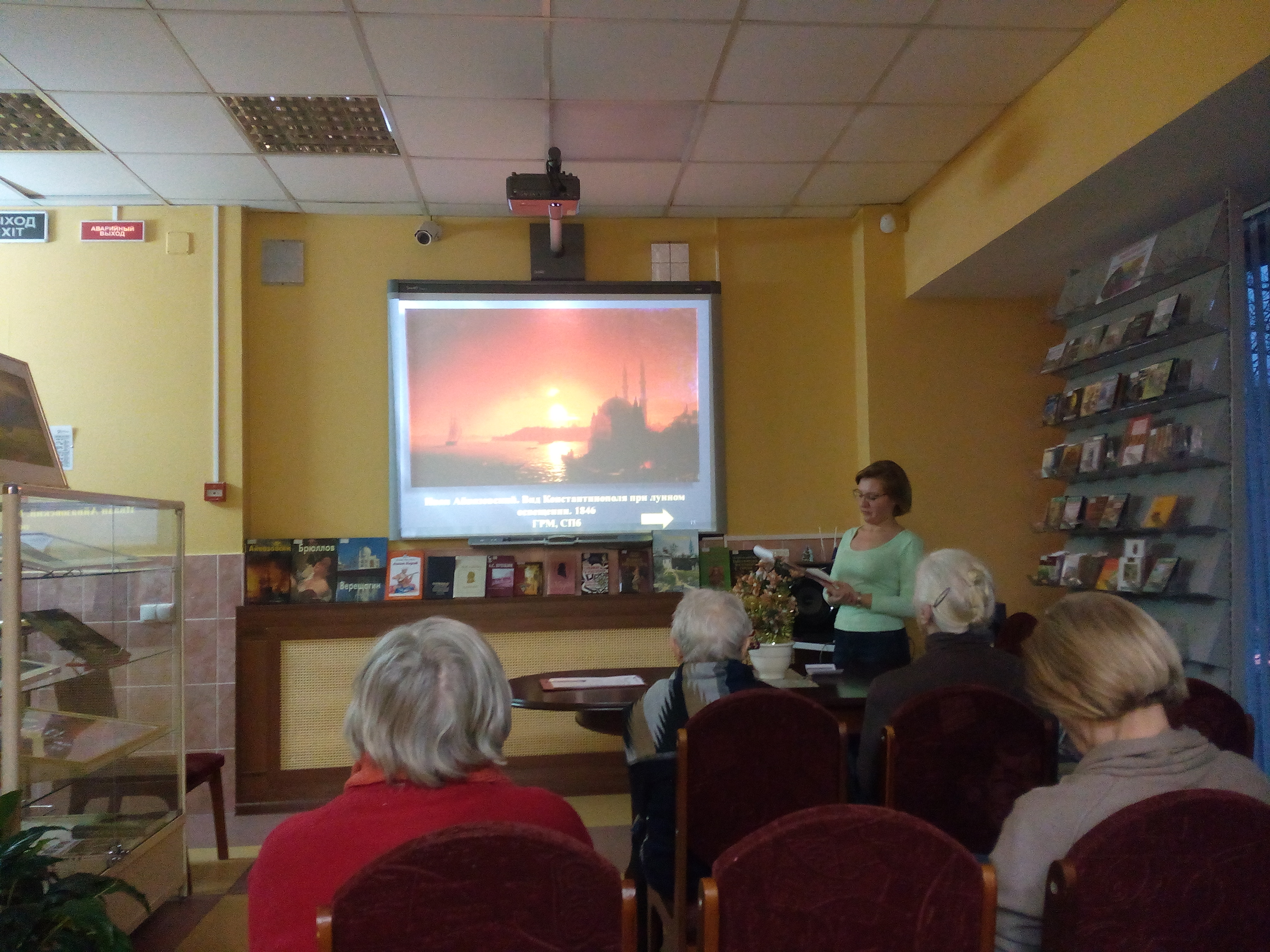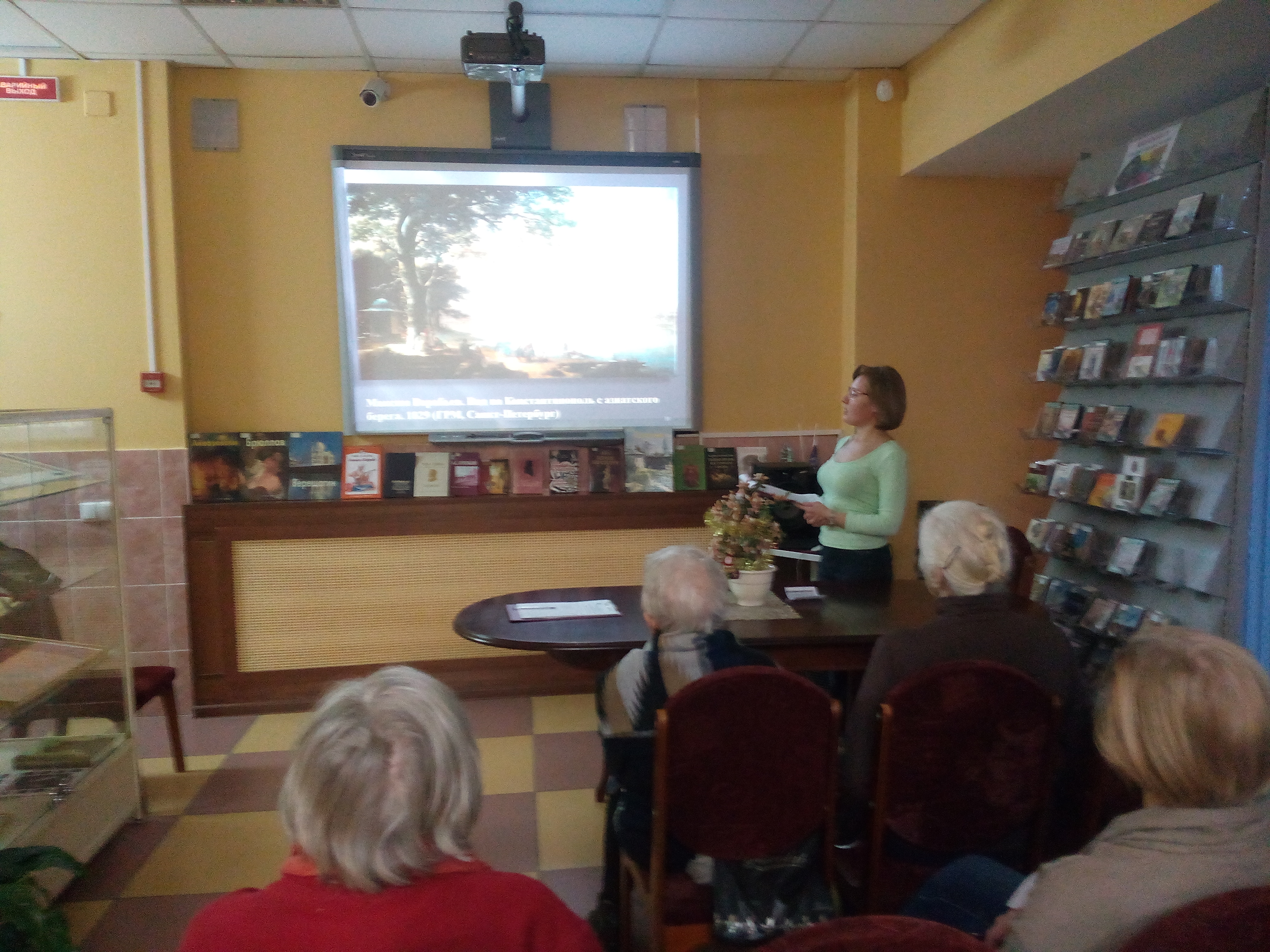 Библиотекарь зала искусства Ольга Николаевна Лыженкова провела беседу, посвященную влиянию Турции на русскую культуру. Для России это была страна изысканной экзотики, и одновременно, военный соперник, который нарушал покой южных рубежей государства.