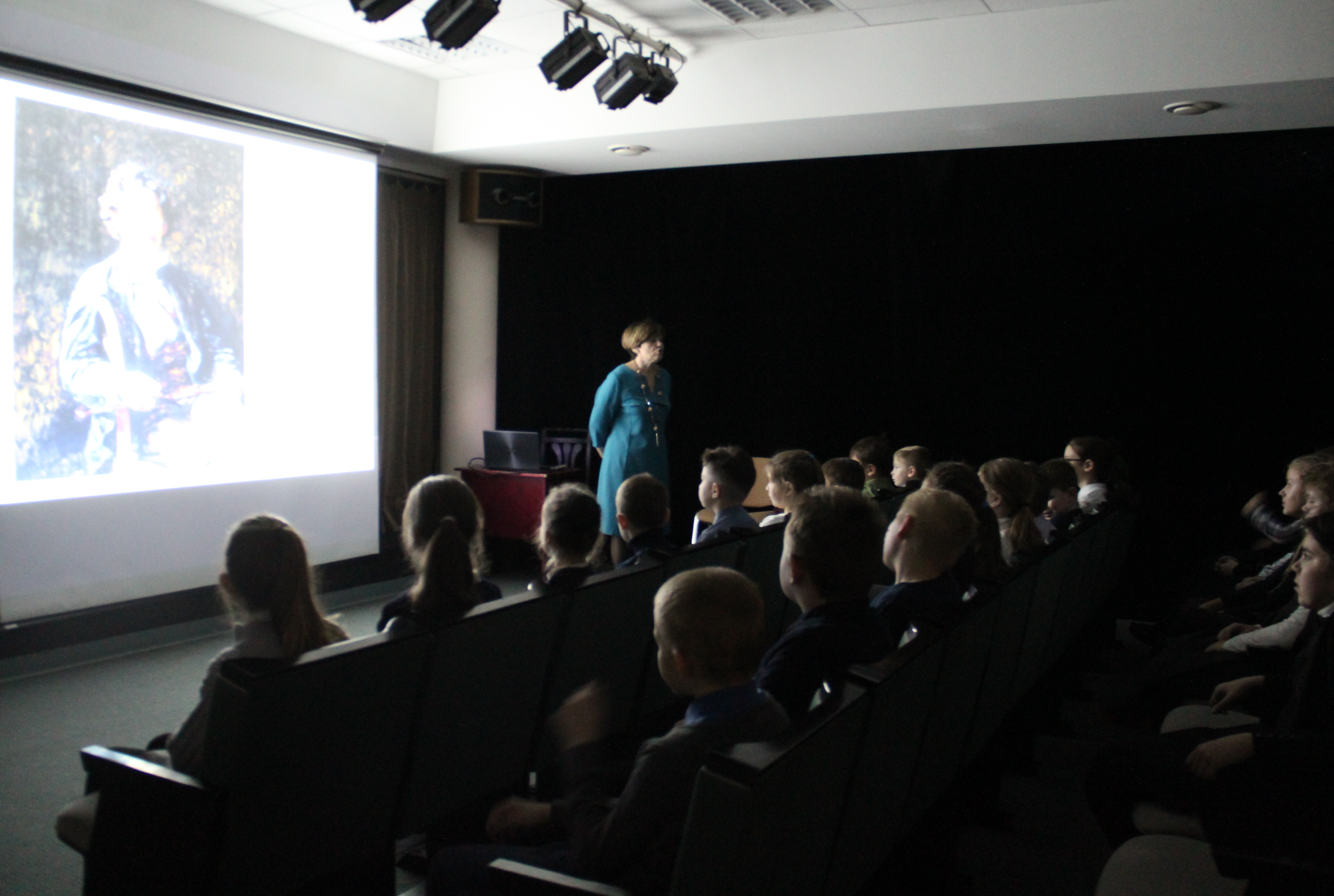 Отмечая юбилей прославленного художника, экскурсию для учащихся четвёртых классов мы посвятили изучению очень близкой детям теме «Детский портрет». Художник неоднократно изображал свою дочь Веру и ребята увидели в этих портретах подвижного, неугомонного ребёнка, настоящего сорванца и сравнили с собой.