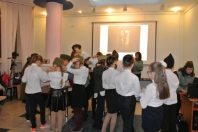 2 декабря в Центральной районной библиотеке им. В. Г. Белинского в рамках проекта «Русский музей: виртуальный филиал» состоялось интерактивное занятие «Дорогами войны. Погружение в историю» для воспитанников студии изобразительного творчества ГБУ ДО «Центр внешкольной работы с детьми и молодежью Калининского района Санкт-Петербурга «Академический».