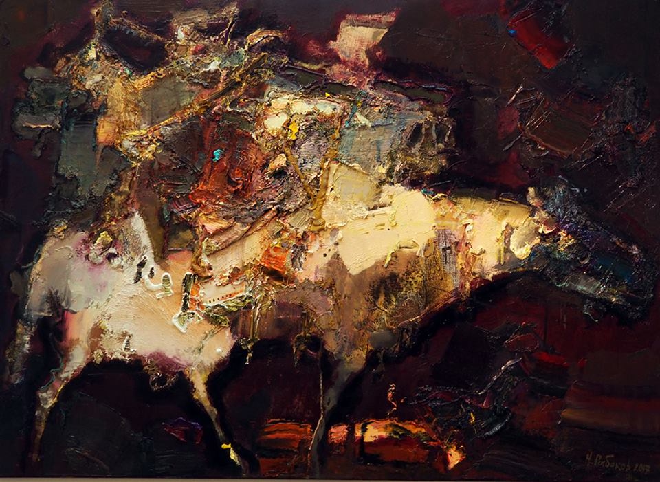 Известный сибирский живописец и график Николай Рыбаков (р. 1947), знаток и исследователь культуры коренных народов, обращается к археологическому и этнографическому материалу для создания собственной визуальной мифологии, средством выражения которой является колористически и пластически богатый живописный язык.