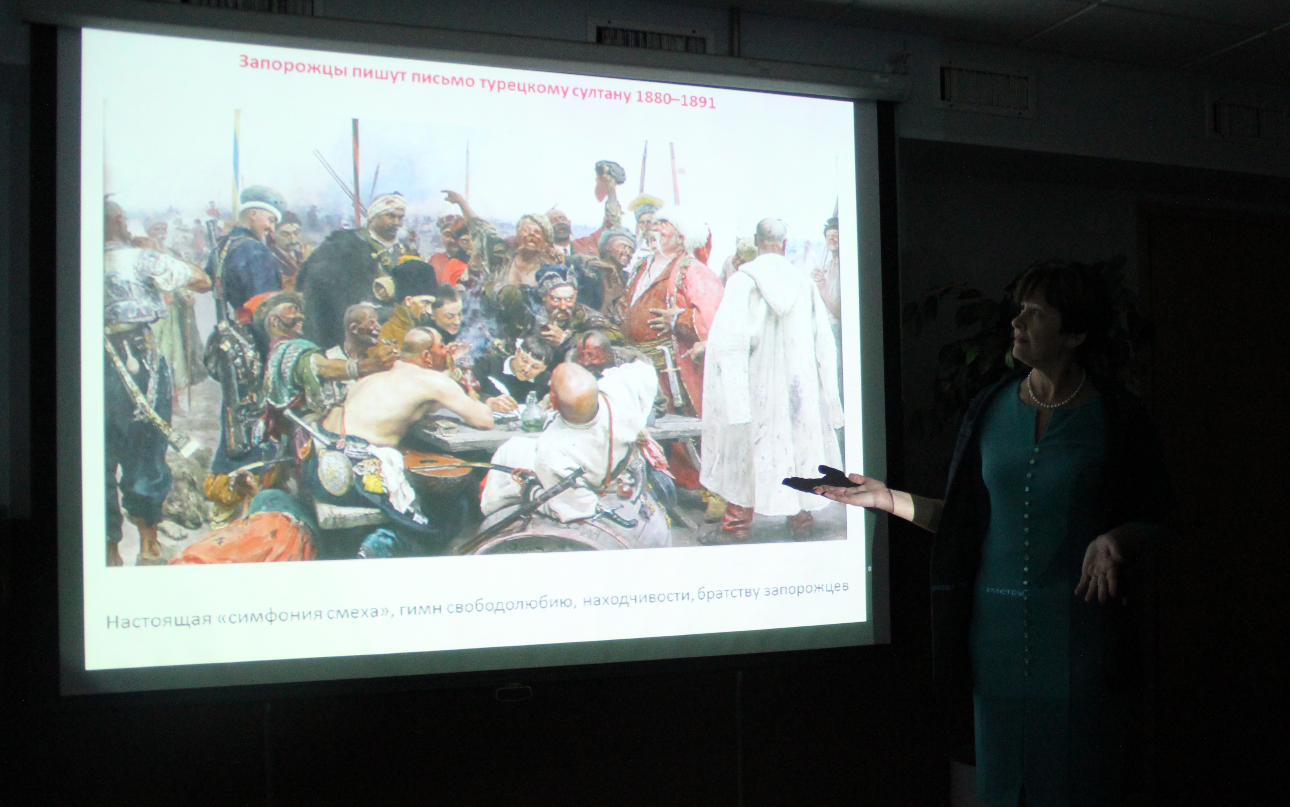 Для выездной экскурсии в цех завода, мы подготовили материал о роли семьи, родных и близких художника И.Е. Репина. Мы надеемся, что встреча с добрыми и весёлыми героями картины «Запорожцы пишут письмо турецкому султану» подняла настроение, в повседневной рутинной работе.