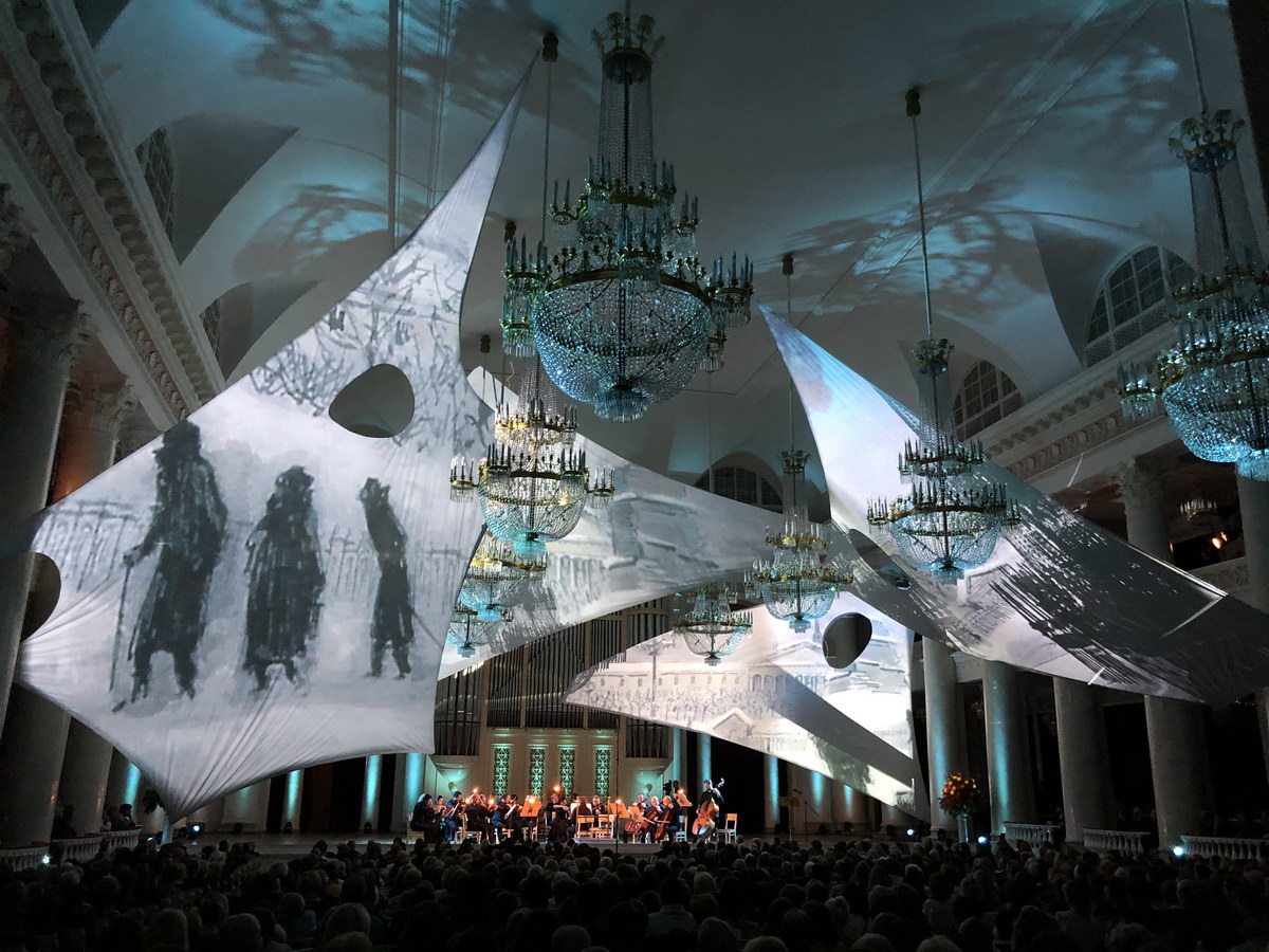 Сама идея отобрать произведения из коллекции Русского музея для проекции в Большом зале Филармонии и органично вплести его в музыкальную канву концерта для нас была особенна ценна. Музыка, которая звучит в этом концерте, в свое время выпадала за рамки официоза, оставалась за пределами официальной истории искусства. Соответственно и в проекции нашли отражения произведения Петрова-Водкина, Филонова, Шагала, которые точно также долгое время были известны лишь посвященным.