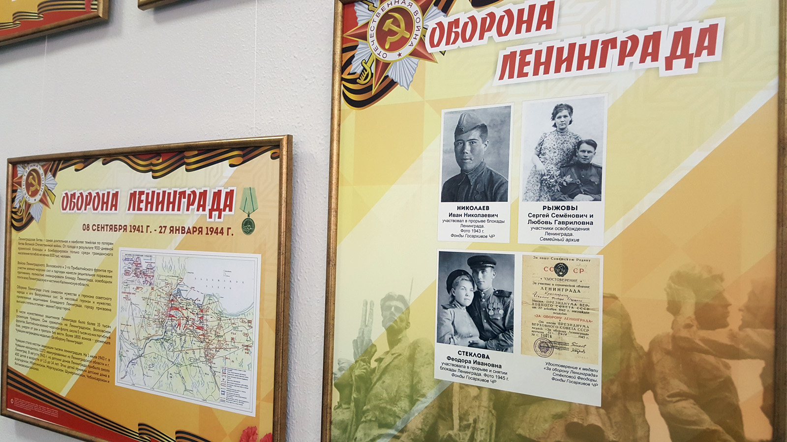 На выставке «Моя семья в истории Великой Победы» школьники, студенты и ветераны г. Чебоксары познакомились с судьбами защитников Ленинграда, уроженцев Чувашской Республики. Среди них - Феодора Стеклова, уроженка деревни Беляево Янтиковского района, прошедшая всю войну и освоившая различные военные специальности: телефонистка, связистка и медицинская сестра. В составе 123-го отдельного полка Феодора Ивановна участвовала в прорыве блокадного Ленинграда. Посетители выставки смогли не только увидеть ее военную фотографию на выставке, но и услышать голос участницы прорыва блокады: на народном сайте победители21.рф размещено интервью с Феодорой Стекловой, где она рассказывает о страшных буднях блокадного города.