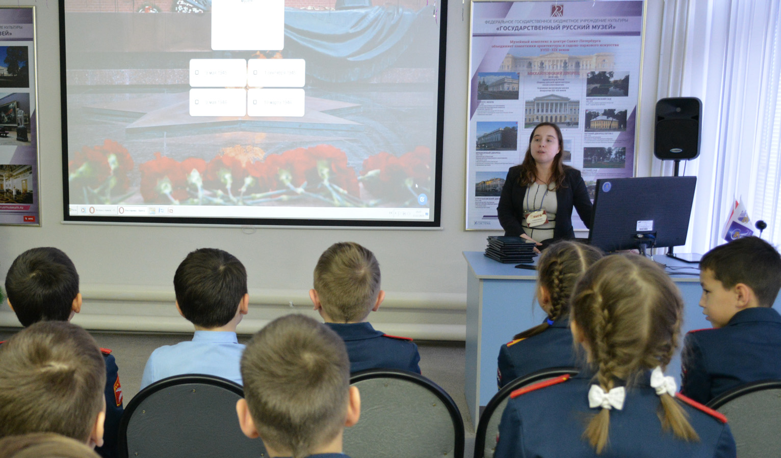 Благодаря уникальному мультимедийному ресурсу Виртуального Русского музея, школьники узнали о подвиге художников блокадного Ленинграда и о самоотверженной работе сотрудников Русского музея по спасению шедевров. Живописцы занимались маскировкой важнейших стратегических и культурных объектов северной столицы, участвовали в агитационно-массовой работе, создавали плакаты и монументальные панно на улицах города. Их ежедневные зарисовки — пронзительная летопись блокадных дней — «ожили» в анимированном фильме «Все 900 блокадных дней».