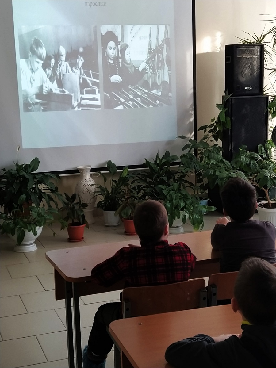 Дети узнали о войне, о блокаде Ленинграда, о детях, которые наравне со взрослыми помогали спасать свой город. Рассказ сопровождался презентацией. Дети посмотрели фильм "Художники блокадного Ленинграда в собрании Русского музея". В заключении дети познакомились с картинами, принадлежащими кисти художников блокадного Ленинграда, из собрания Русского музея (раздел "Коллекция"). Закончилось мероприятие клипом на песню «Дети войны».