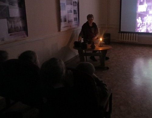 Патриотический урок, посвященный 76-й годовщине снятия блокады Ленинграда, провели для учащихся младших классов Солнечной школы. Рассказ о блокадном городе и его защитниках, о голоде, холоде и человеческом героизме сопровождала виртуальная выставка работ художников – ленинградцев «Да будет мерой чести Ленинград», представленная на виртуальном портале Русского музея. Блокадный город… занесенные снегом улицы, вереницы людей бредущих за невской водой, разрушенные дома. Ребята узнавали о жизни в блокадном городе, внимательно рассматривали рисунки, сделанные художниками. Нам, родившимся после войны, трудно все это себе представить. Но если постараться… Котелок, чайник, зажженная свеча в старом подсвечнике… и маленький кусочек хлеба.