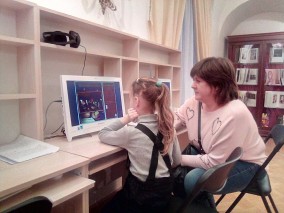 В информационно-образовательном классе дети вместе с родителями могли познакомиться с игровыми программами Русского музея, такими как «Ровесники», «Царское дело» и «России воины-сыны», а взрослые ознакомится с виртуальными турами по выставкам, проходившим в Русском музее, например «Мечты о мировом расцвете» или «Георг Христоф Гроот и Елизаветинское время» или интерактивными программами, такими как «Дмитрий Левицкий. «Смолянки». Реставрация портретов».
