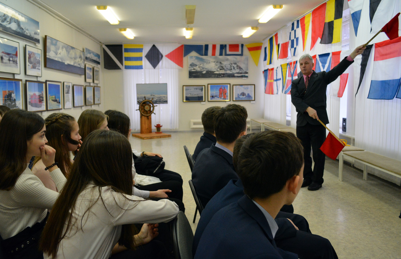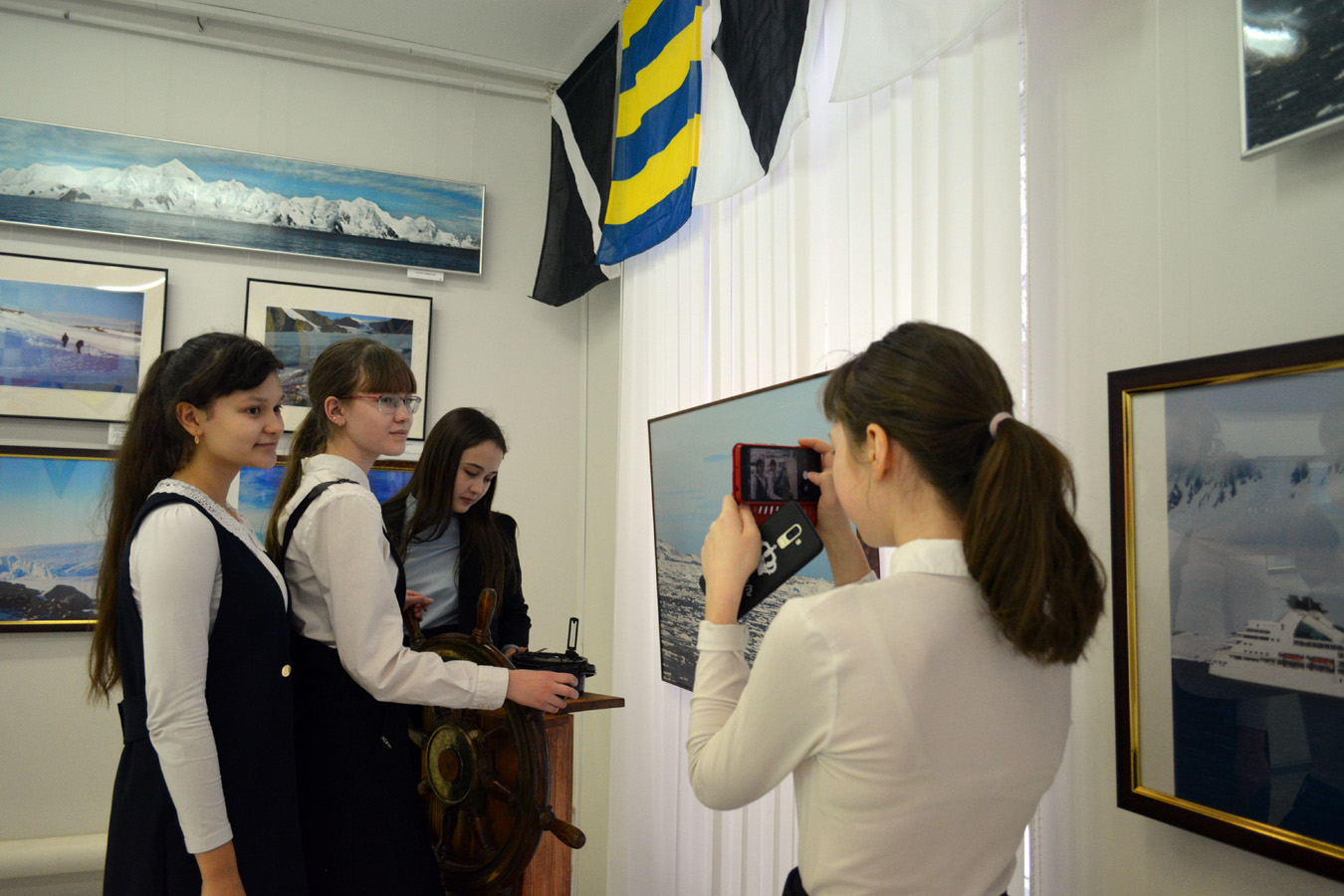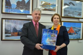 Директор КВЦ «Радуга» Нина Смирнова вручила благодарность Валерию Владимировичу за активное содействие в реализации международного выставочного проекта в Год Антарктиды в России. За первые две недели работы фотовыставки ее посетило уже более 1000 человек, прежде всего учащихся школ Чувашской Республики. История открытия и во многом дальнейшего освоения Антарктиды — это история мужества, блестящего профессионализма экипажей шлюпов «Восток» и «Мирный» под руководством опытных флотоводцев Фаддея Беллинсгаузена и Михаила Лазарева, советских и российских моряков.
