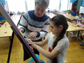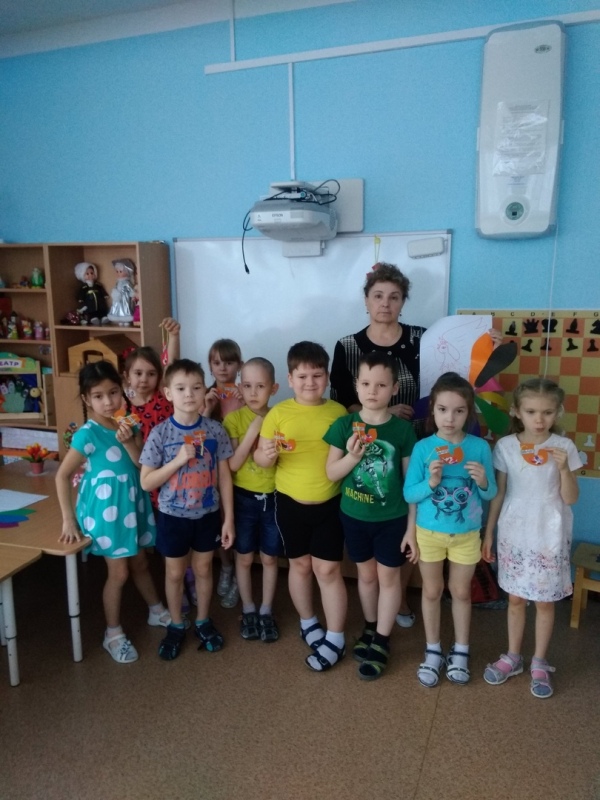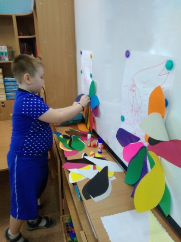 Воспитанники детского сада смогли проявить коммуникативные качества при выполнении коллективной работы «Жар-птица», используя технику аппликации.