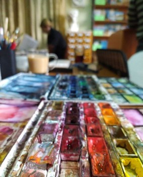 В библиотеке-филиале № 4 ГБУК г. Севастополя «РИБС» продолжаются субботние арт-практикумы проектной платформы АЗЪБУКАРТ. Теоретическую часть встреч обеспечивают сотрудники Информационно-образовательного центра «Русский музей: виртуальный филиал» ЦГБ им. Л.Н. Толстого. Практическую - художник, представитель союза художников Севастополя «Балаклавская палитра» Сергеем Грищенко.