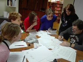 В библиотеке-филиале № 4 ГБУК г. Севастополя «РИБС» по-прежнему каждую субботу собираются творческие люди, чтобы рисовать, общаться и обмениваться опытом. Руководитель Информационно-образовательного центра «Русский музей: виртуальный филиал» ЦГБ им. Л.Н. Толстого, искусствовед, редактор, куратор проектной платформы АЗЪБУКАРТ Анна Горенкова совместно с художником, представителем союза художников Севастополя «Балаклавская палитра» Сергеем Грищенко, провели серию арт-практикумов по леттерингу.